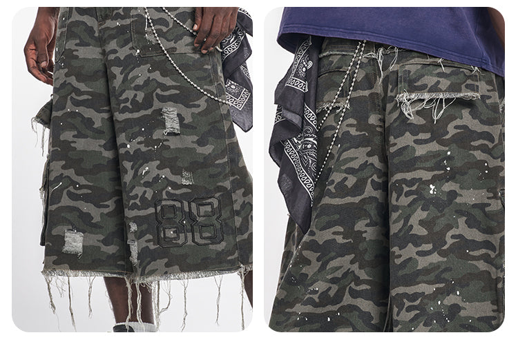F3F Select Camouflage Splash Ink Utility Baggy Shorts