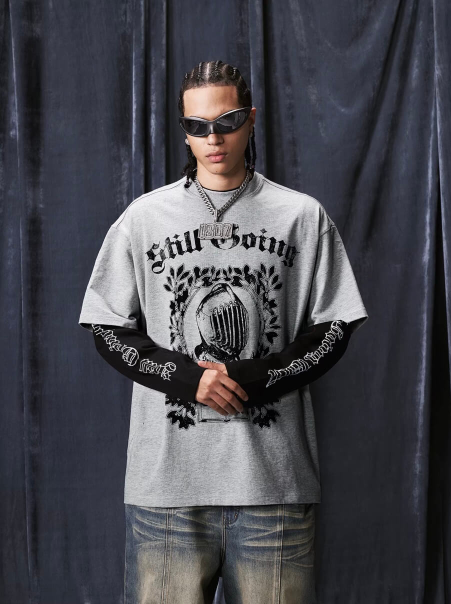 1807 STILLGOING Vintage Printed Layered Long Sleeve Tee