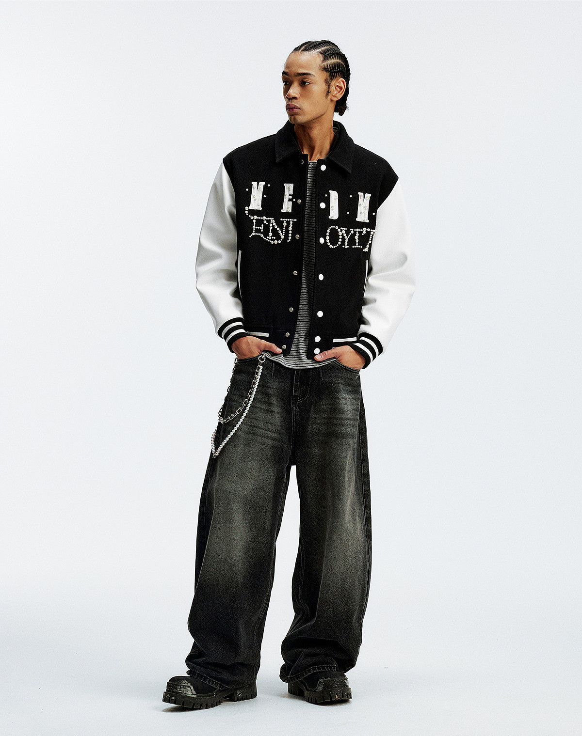 MEDM Pearl Logo Color Block Varsity Jacket | Face 3 Face