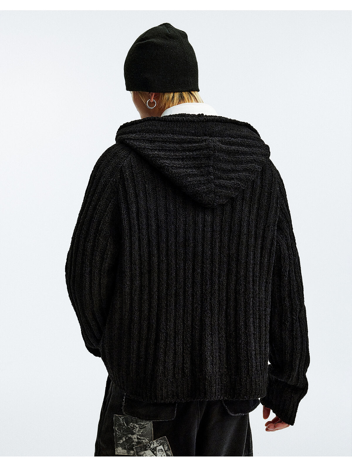 MEDM Stripe Knit Hooded Cardigan | Face 3 Face