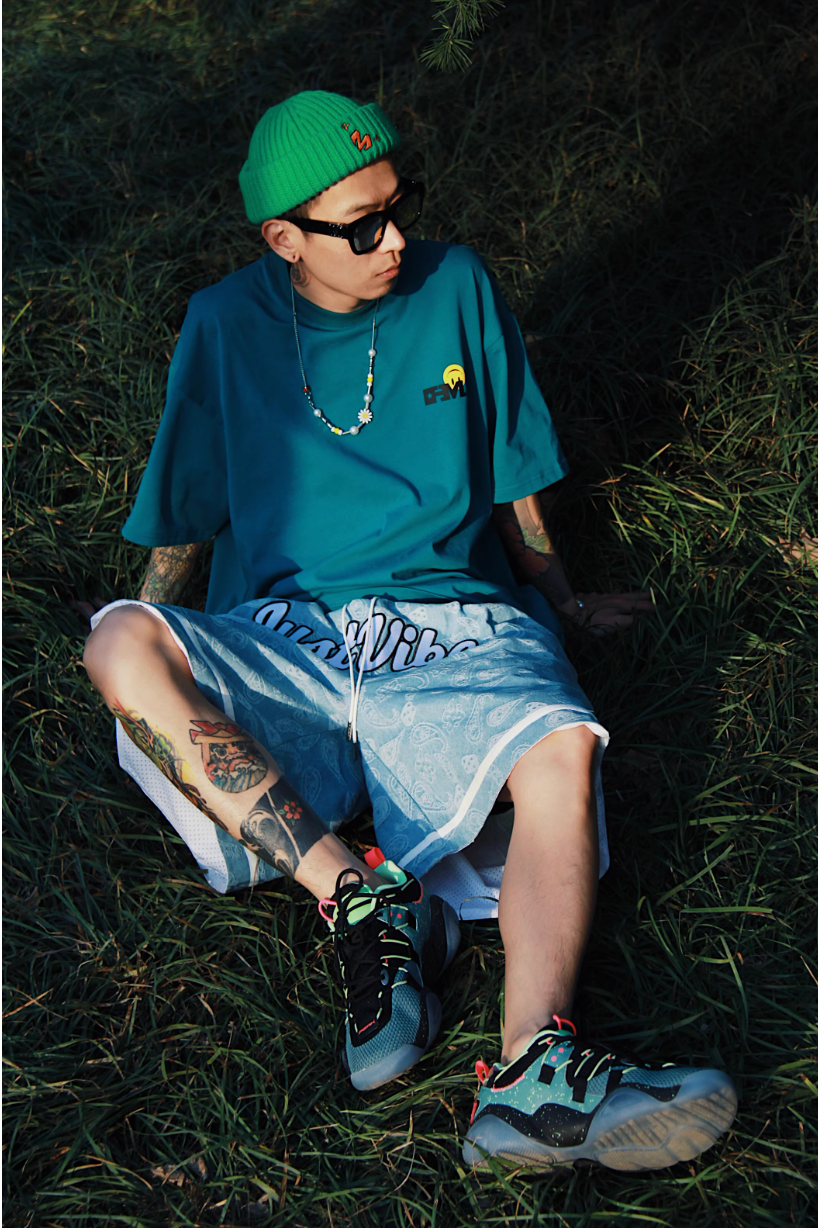 JUST VIBE Paisley Dice Denim Basketball Shorts | Face 3 Face