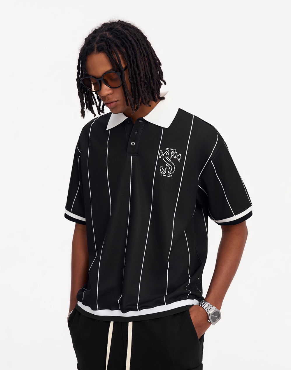 Small Town Kid Pearl Logo Striped Polo Jersey | Face 3 Face