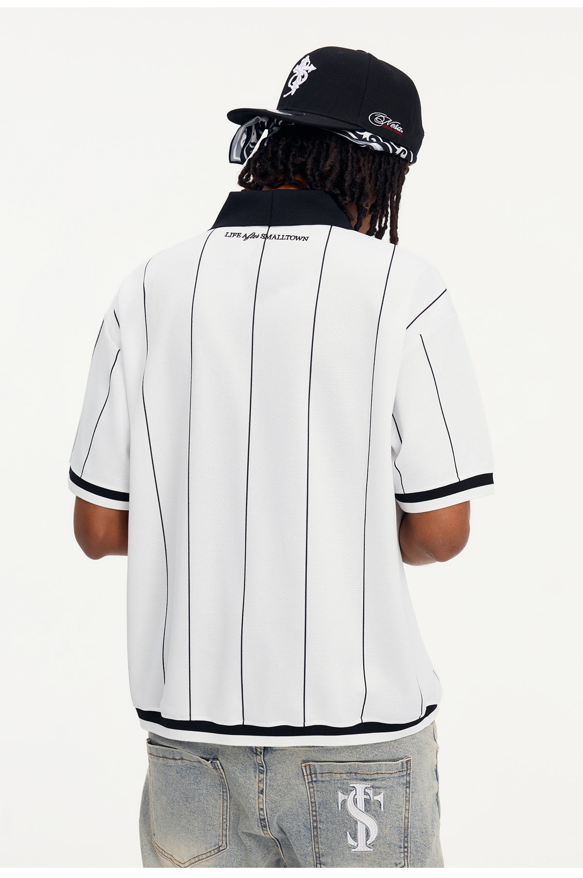 Small Town Kid Pearl Logo Striped Polo Jersey