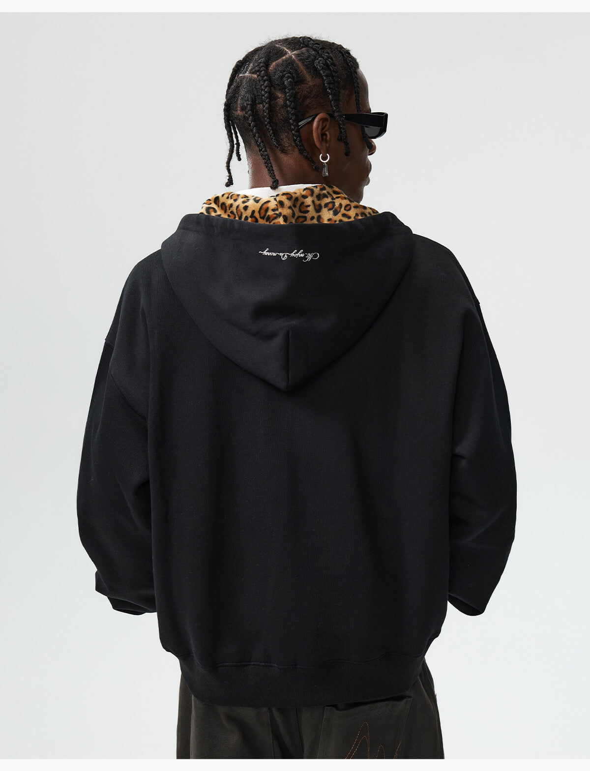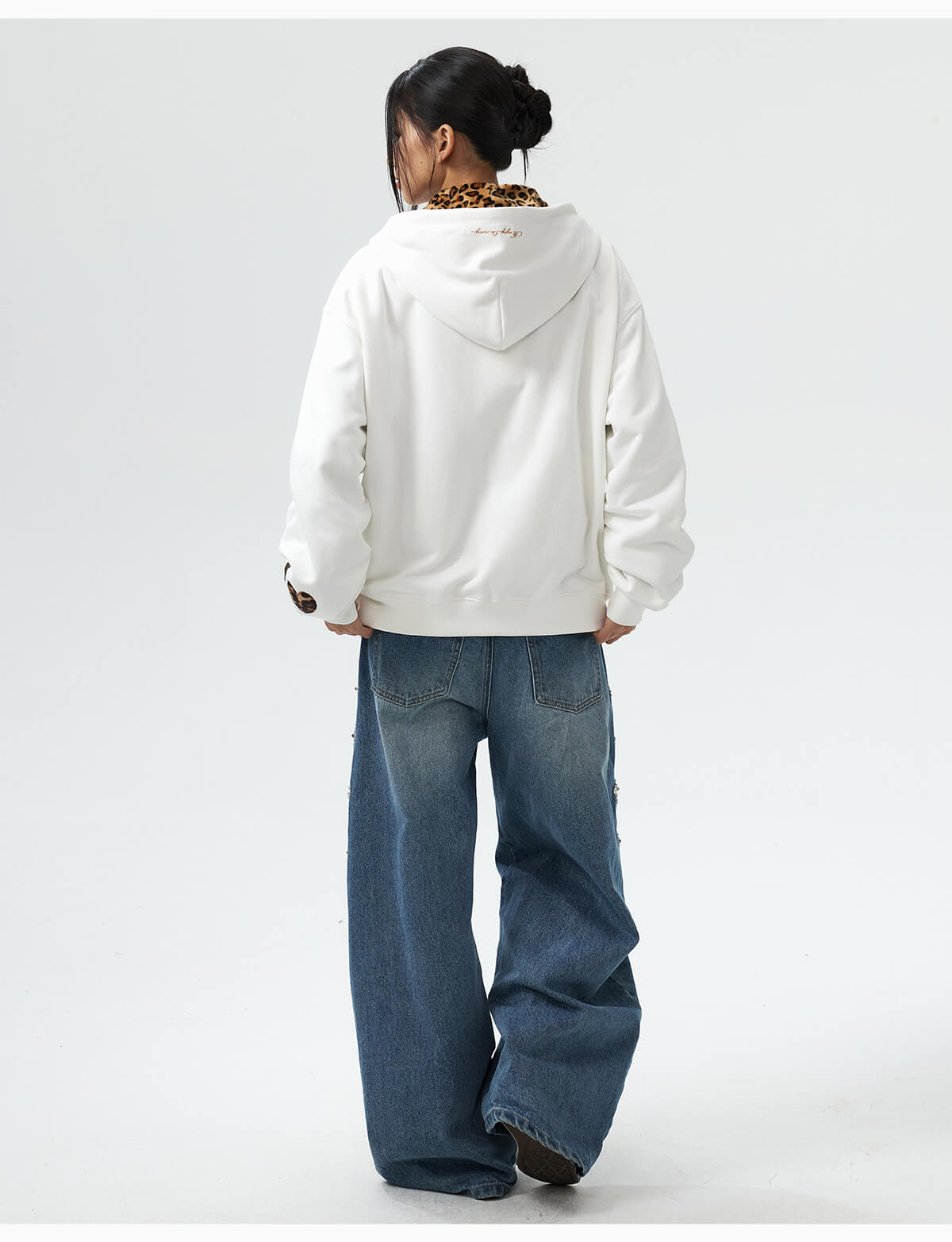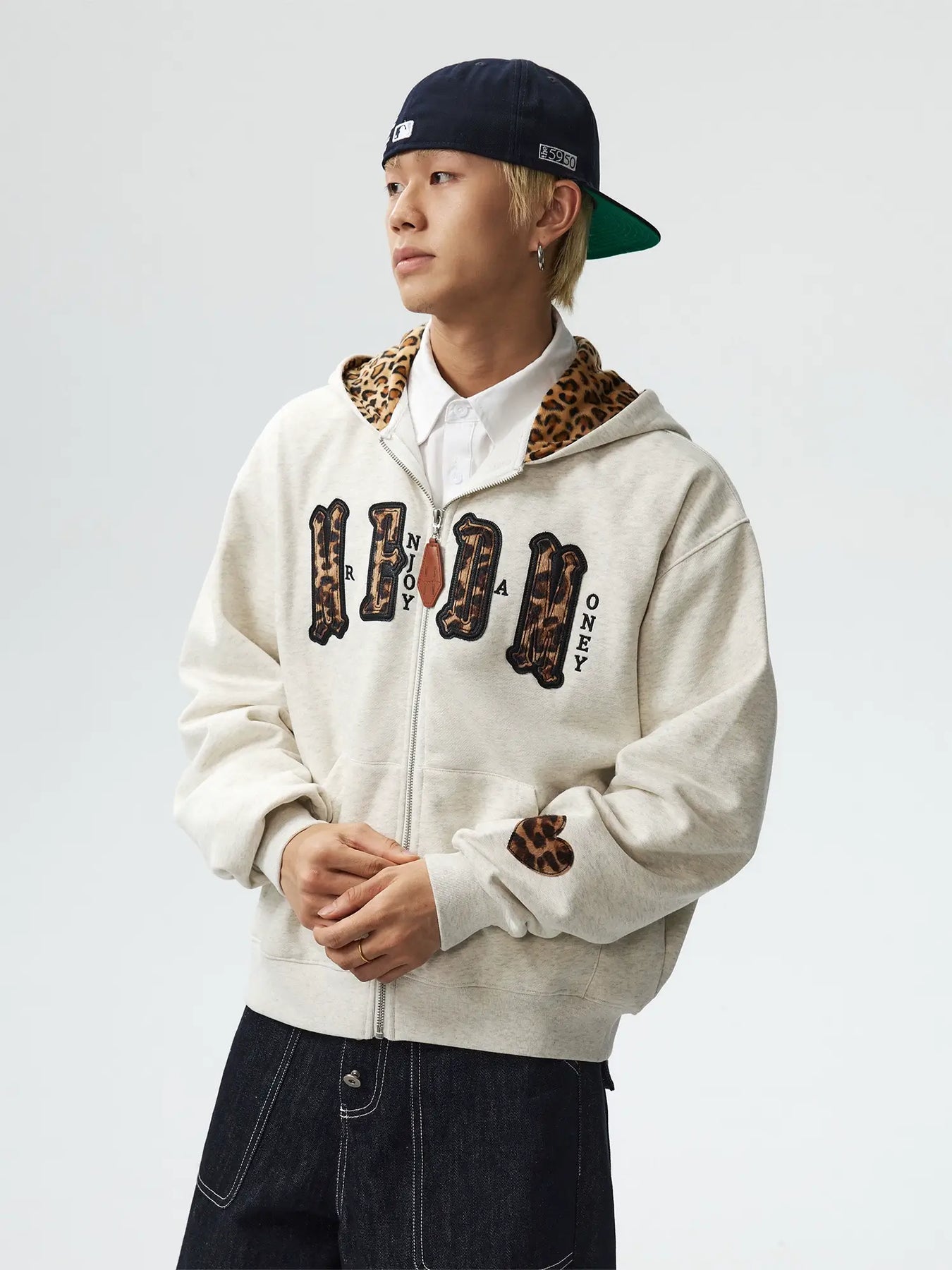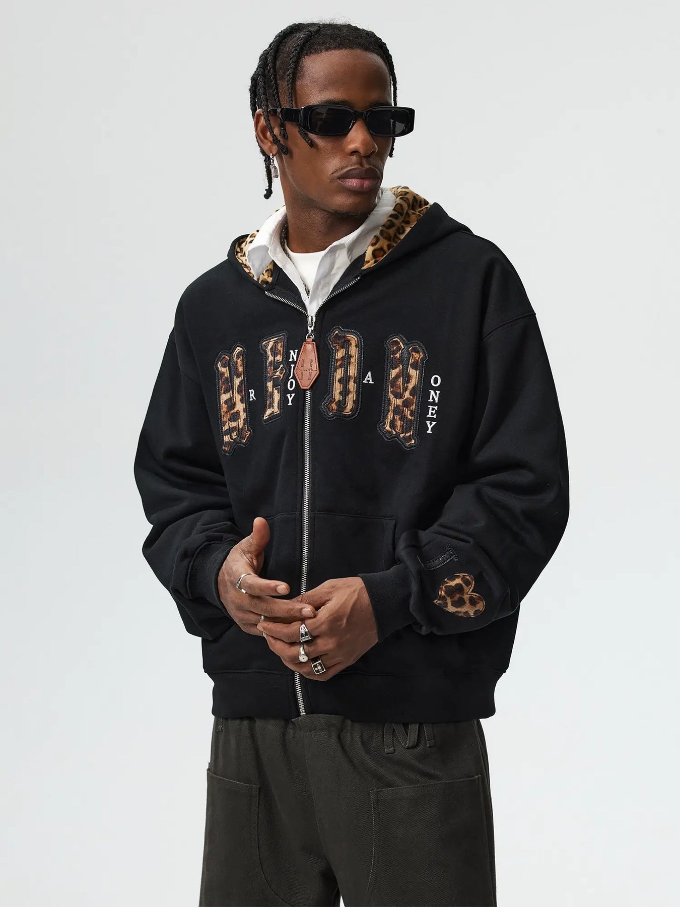 MEDM Leopard Faux Fur Layered Zip Up Hoodie