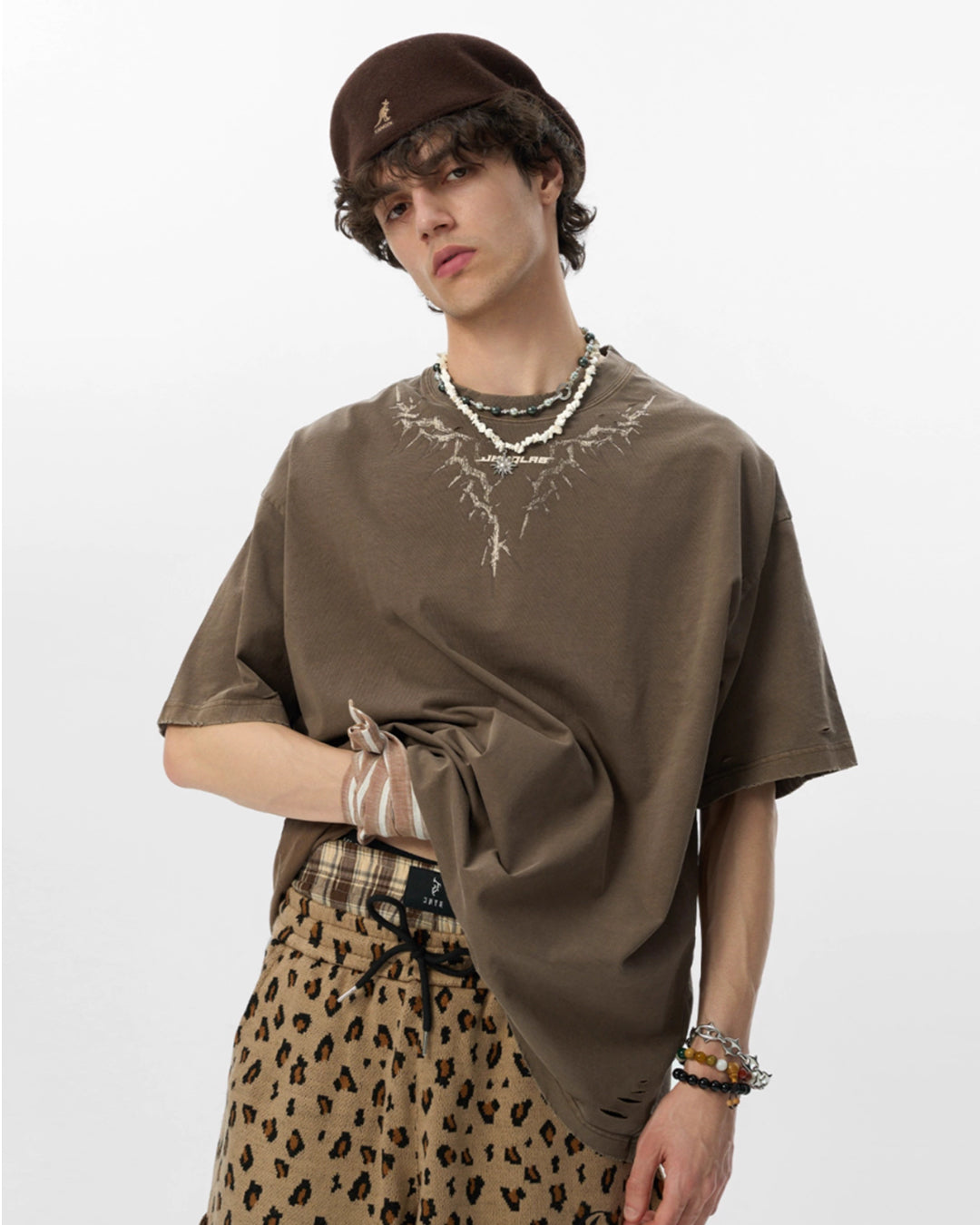 JHYQ Thorn Print Destruction Washed Tee | Face 3 Face