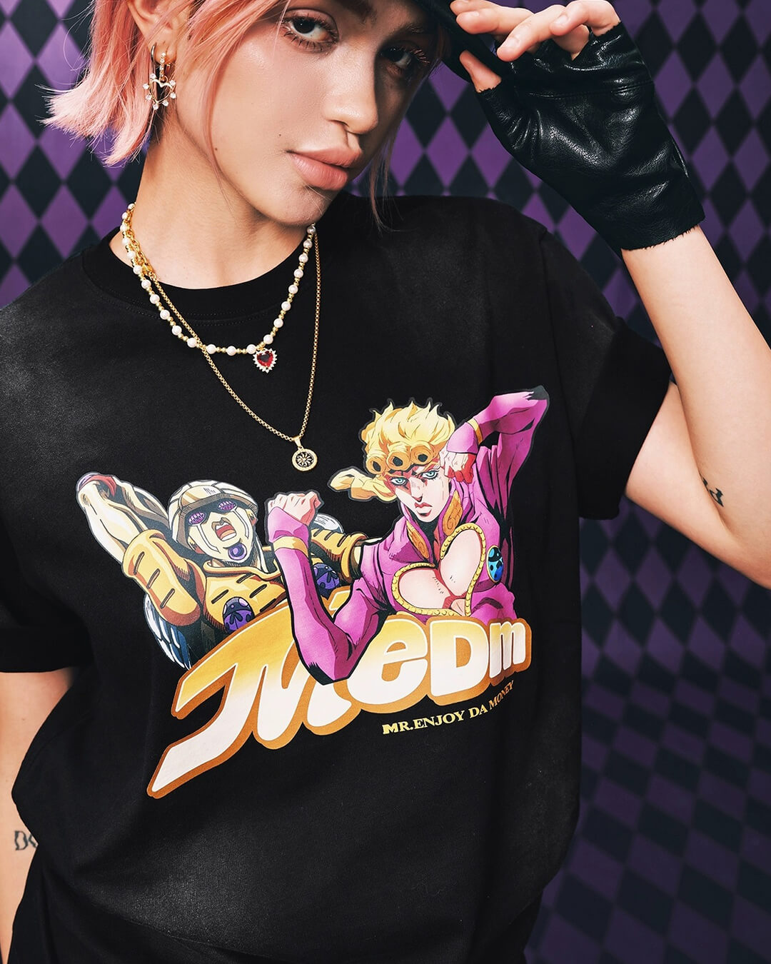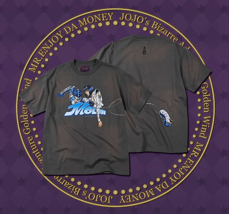 MEDM's collaboration with JoJo's Bizarre Adventure brings iconic characters to life through this washed distressed tee. Featuring Giorno Giovanna, Bruno Bucciarati, and Narancia Ghirga in a carefully crafted character print, this piece merges anime fandom with contemporary streetwear aesthetics. The distressed wash treatment adds vintage authenticity and edge, while the premium construction ensures durability through repeated wear. Perfect for collectors and fans seeking statement-making apparel that celebrates the series' most memorable protagonists.
