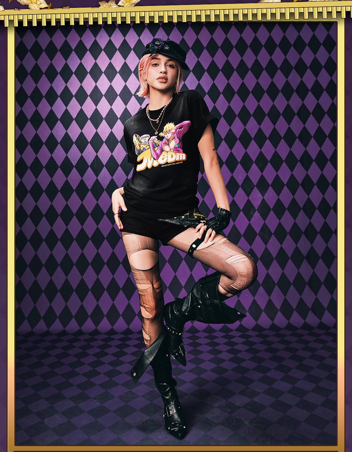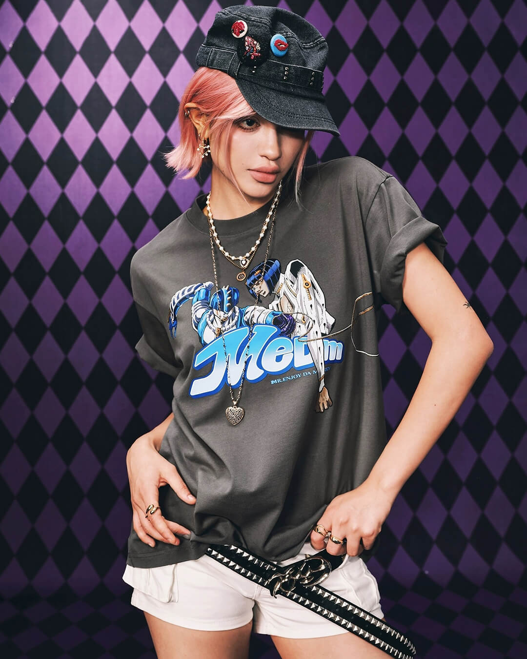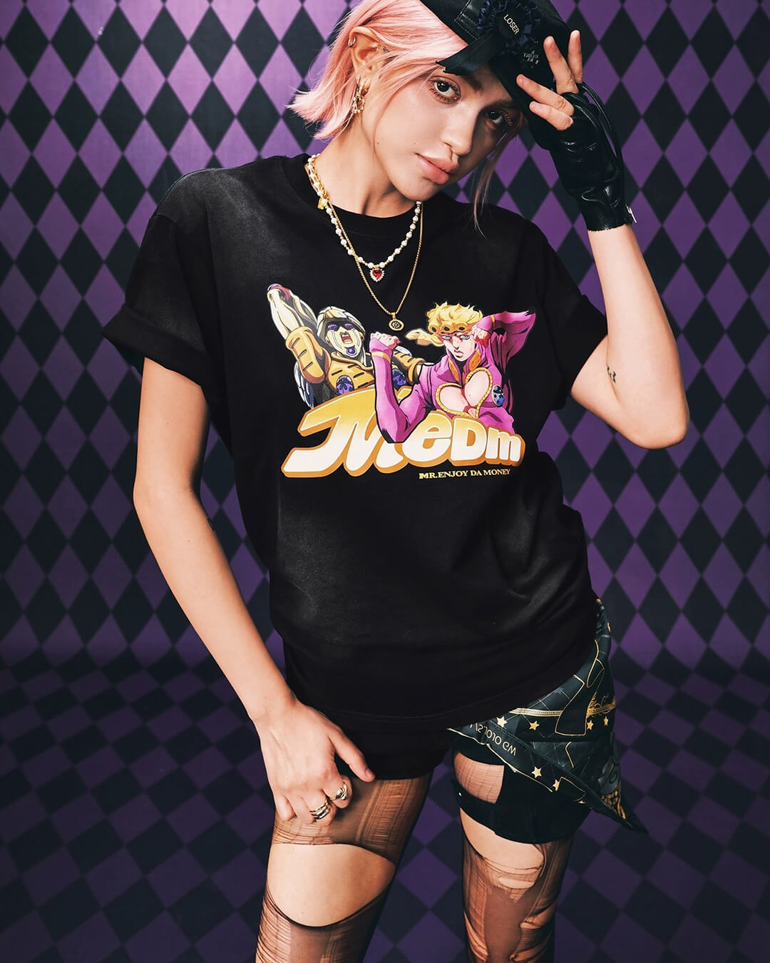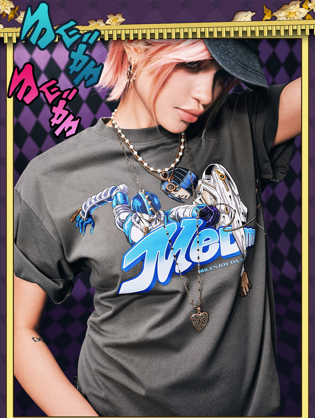 MEDM × JOJO Washed Distressed Character Print Tee