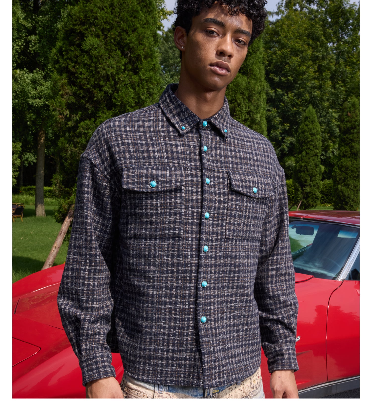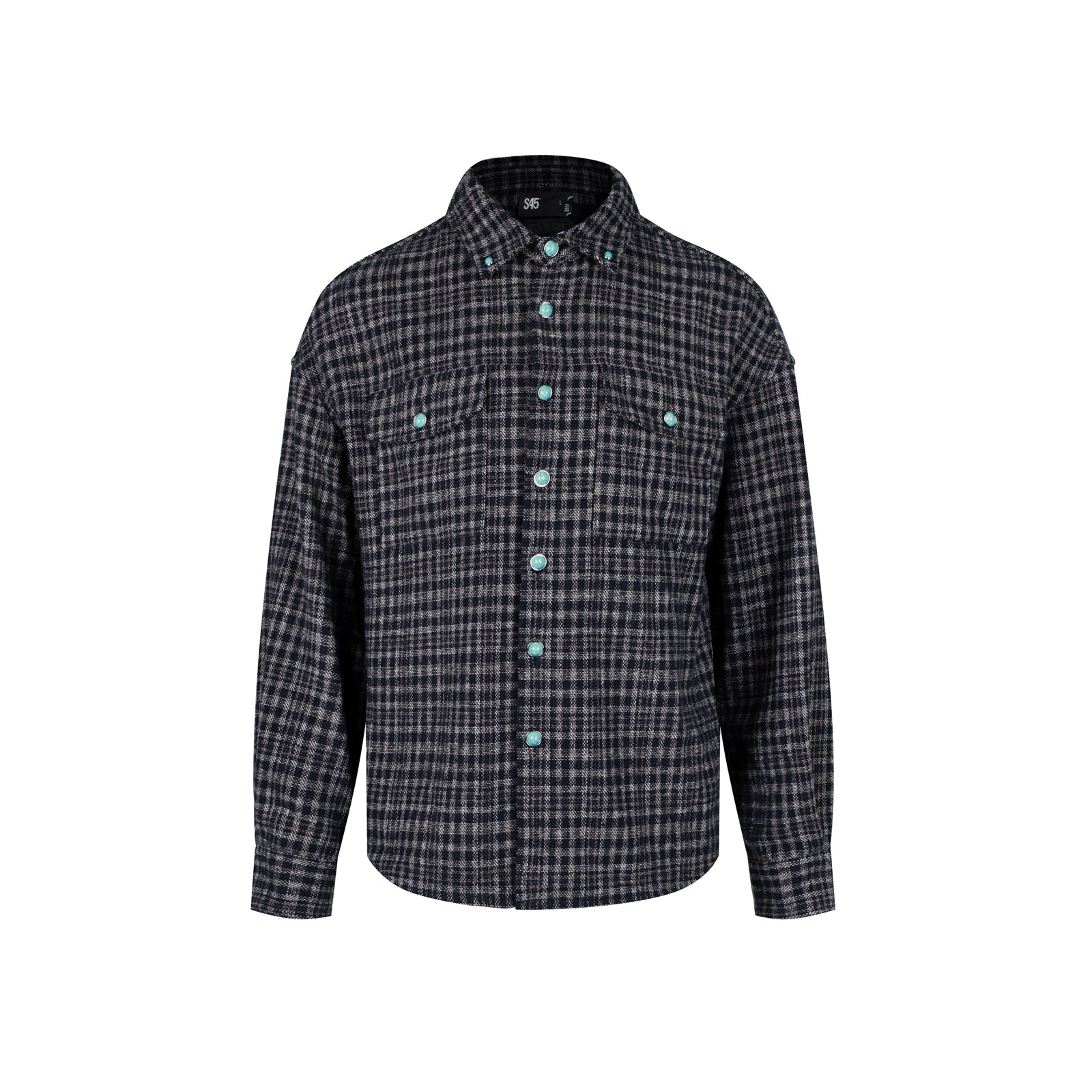 S45 Turquoise Button Plaid Long Sleeve Shirt