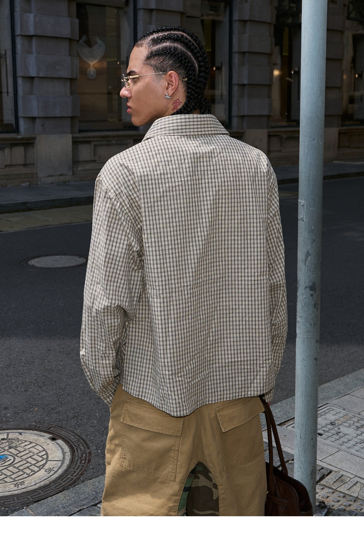 STEEPC Plaid Patch Embroidered Long Sleeve Shirt