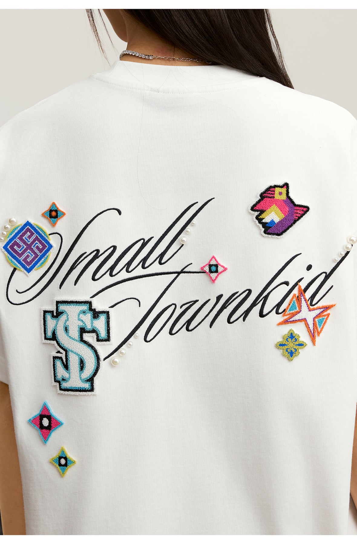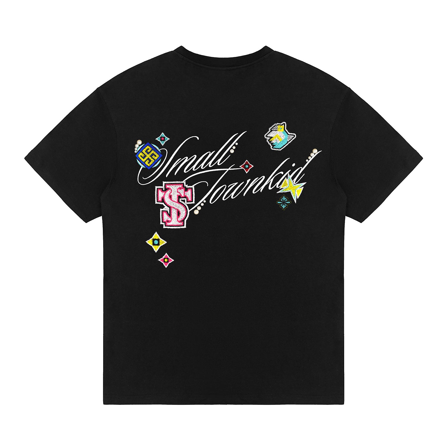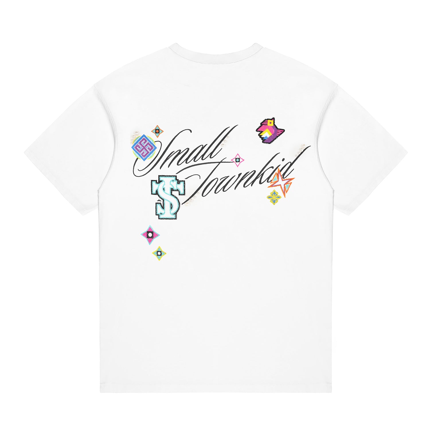 Small Town Kid Ethnic Patchwork Pearl Embellished Tee | Face 3 Face