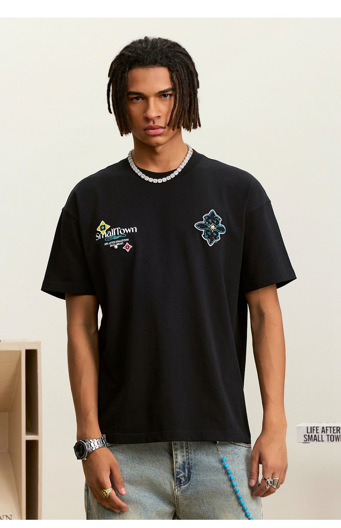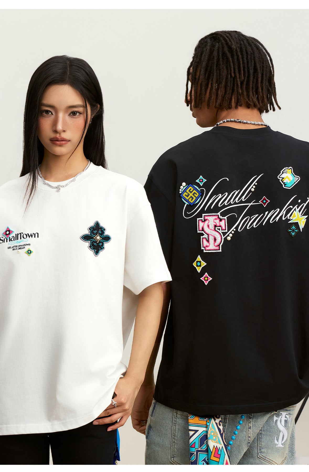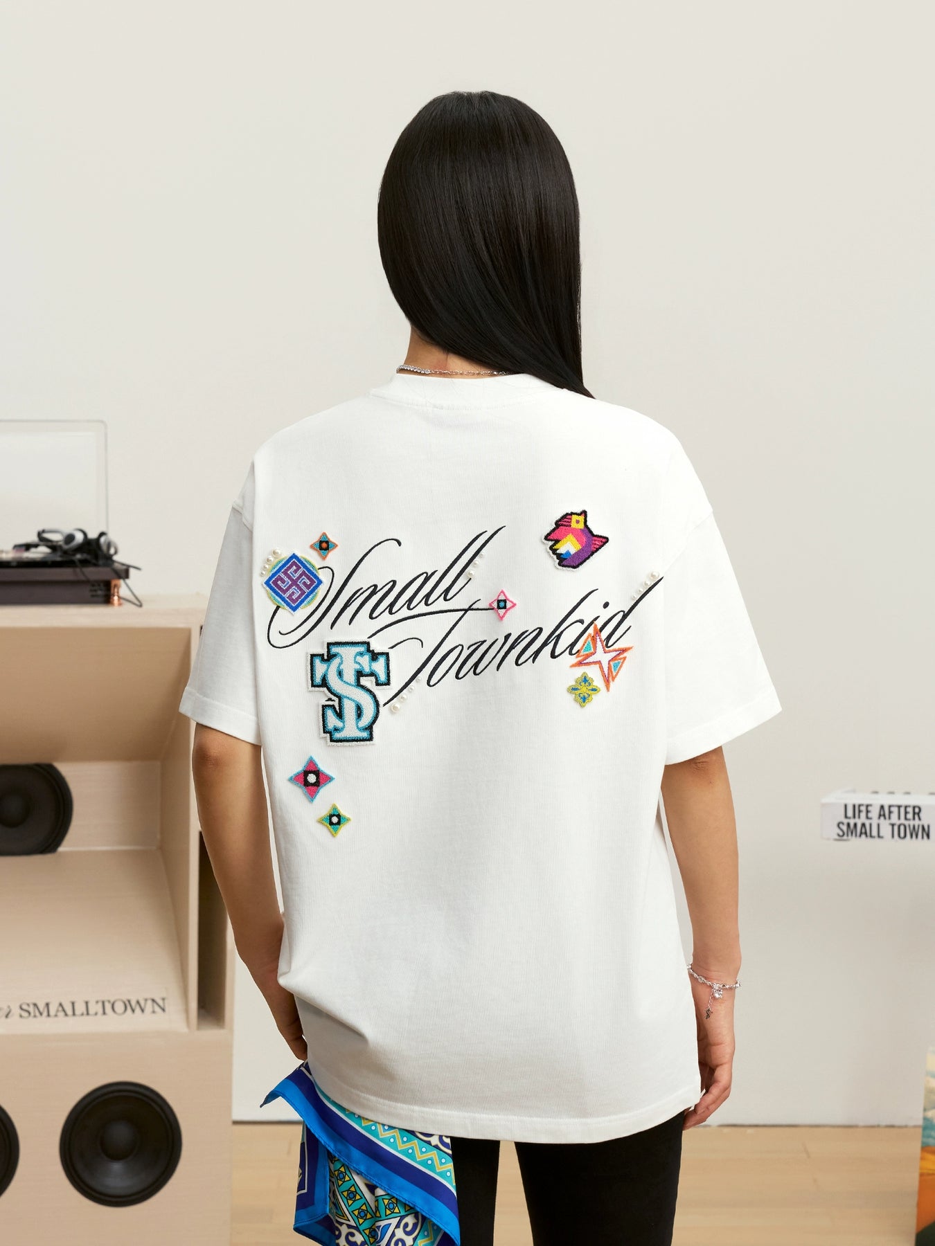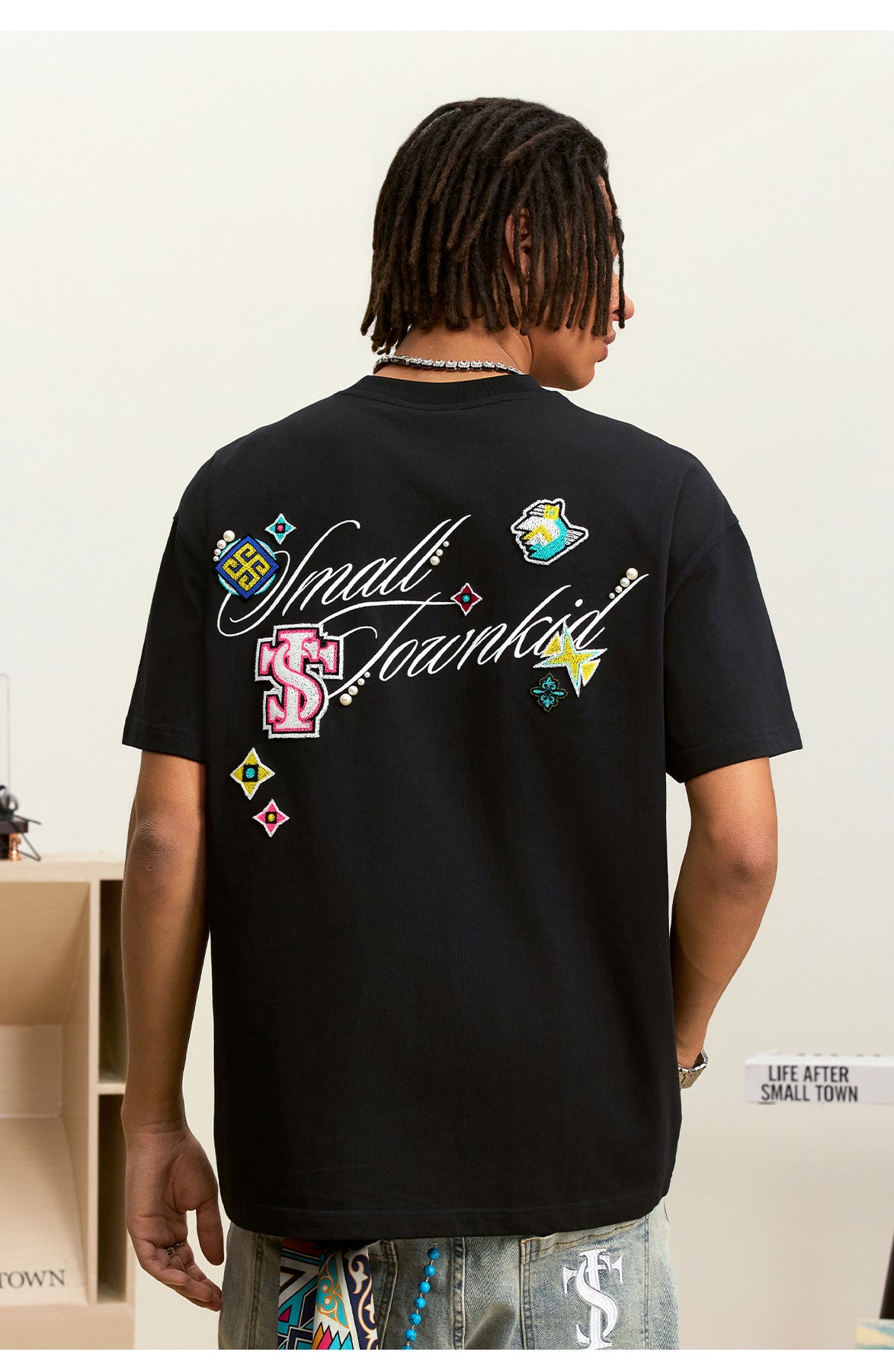 Small Town Kid Ethnic Patchwork Pearl Embellished Tee | Face 3 Face