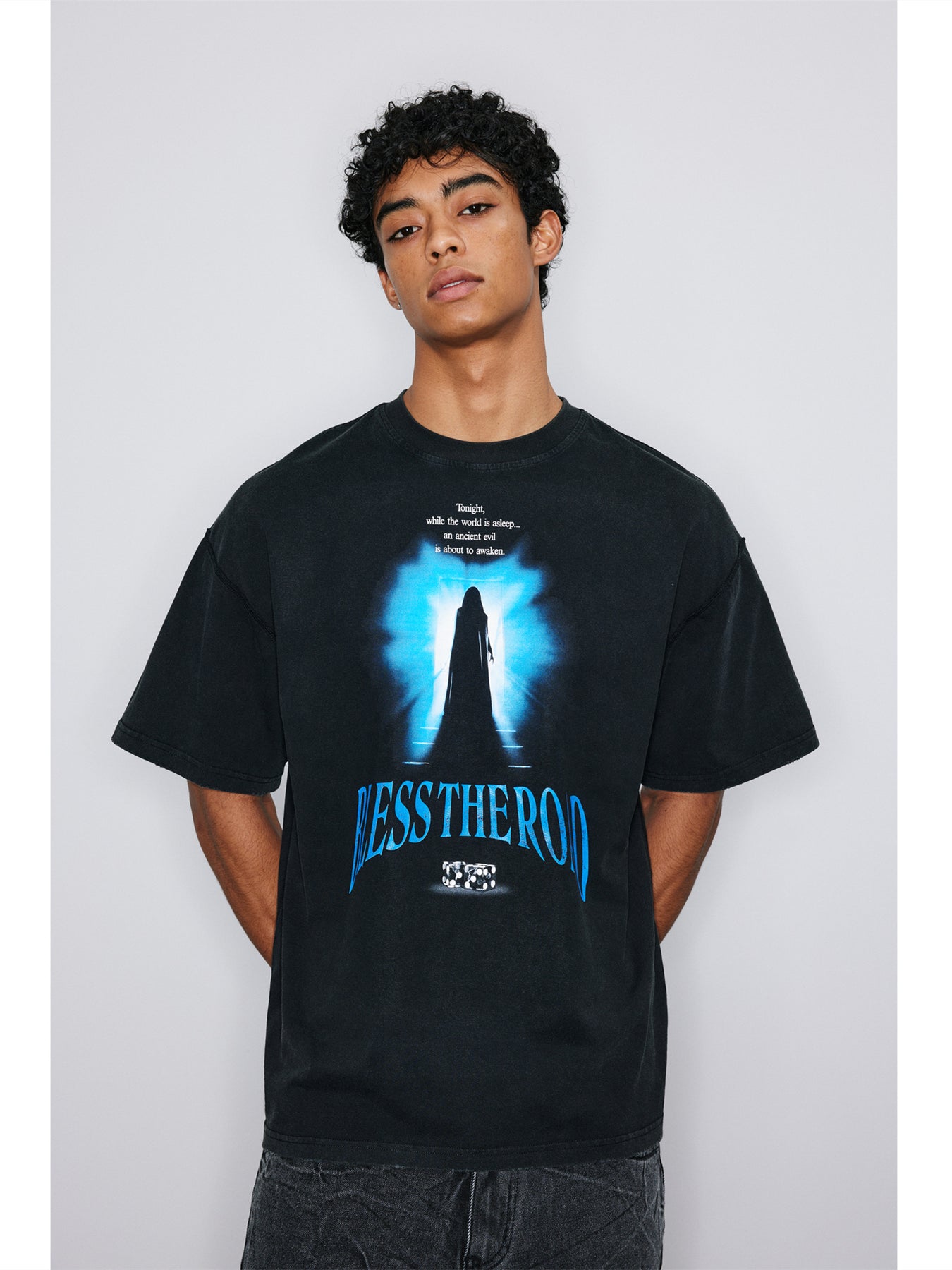 NOVACAM BLESS THE ROAD Vintage Print Reverse Stitching Tee