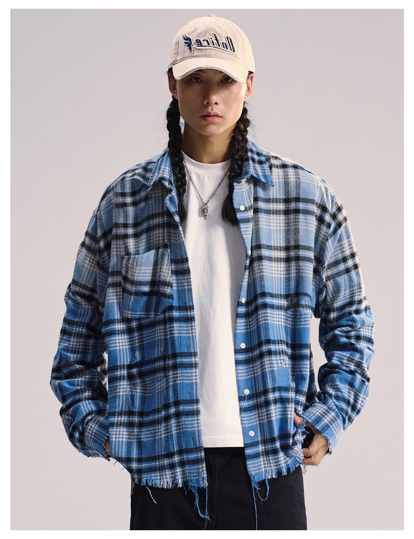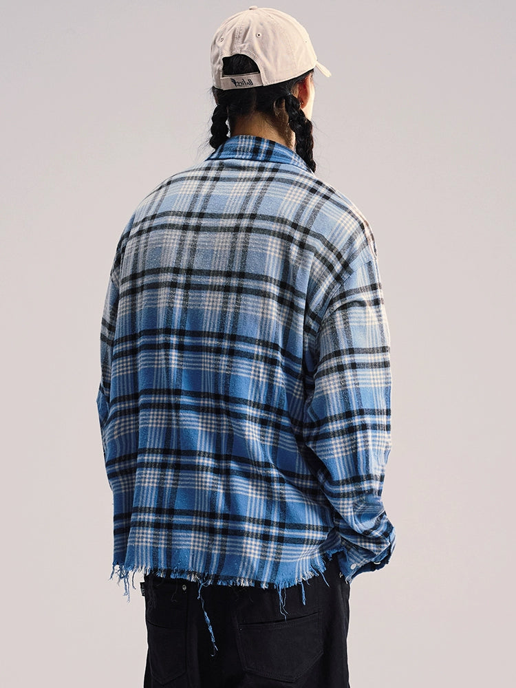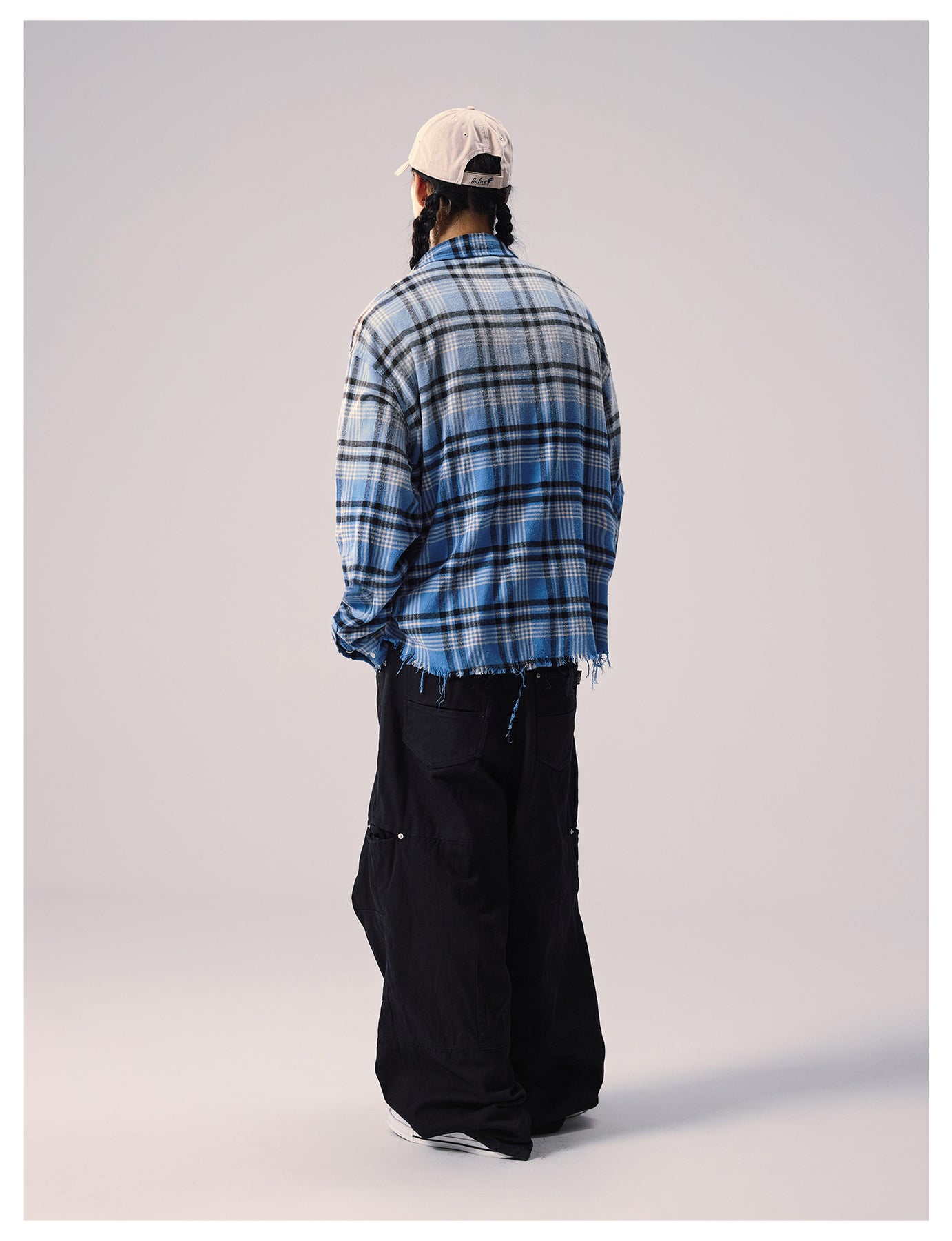 Remedy Washed Gradient Plaid Cutoff Long Sleeve Shirt