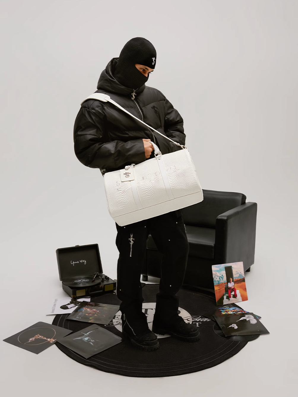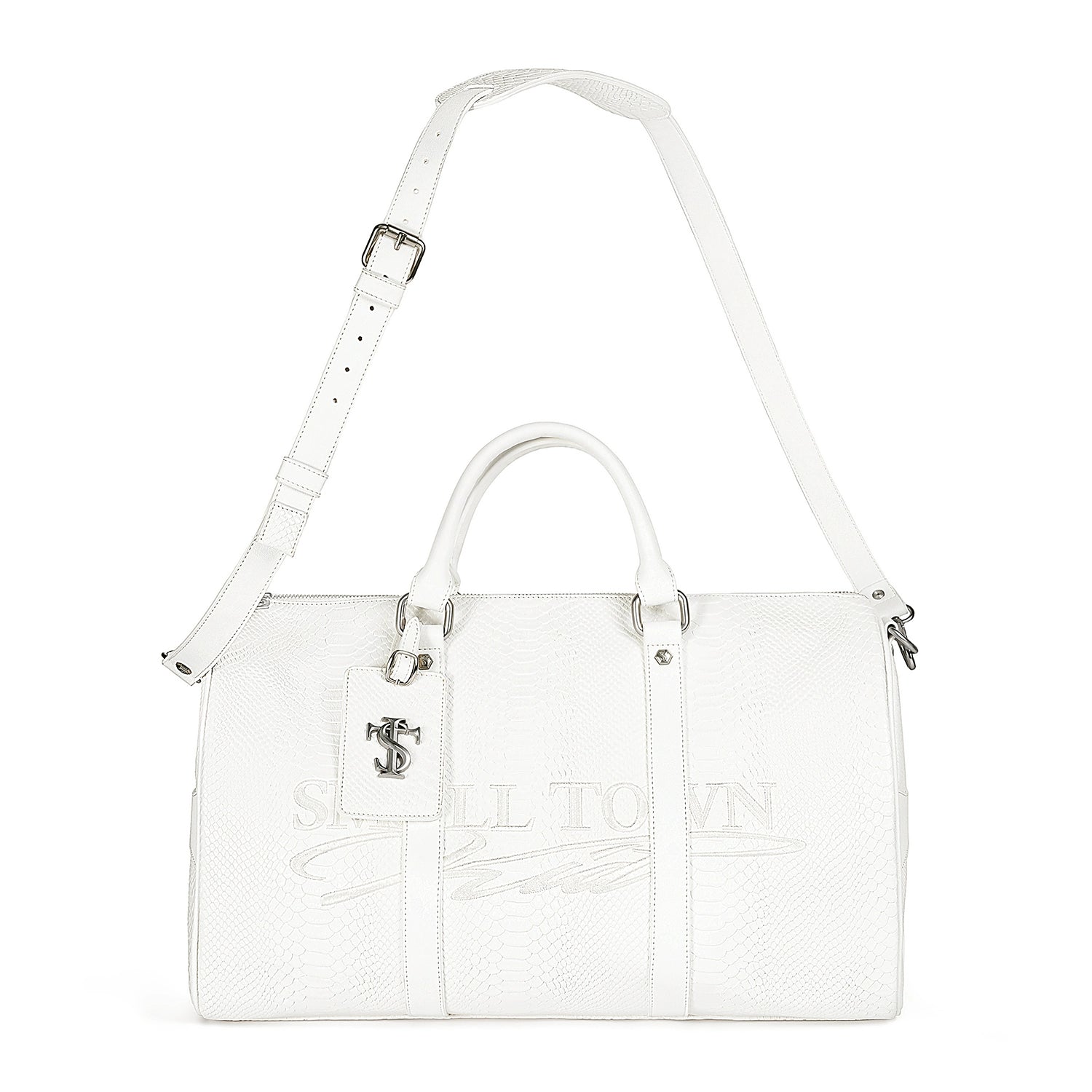 Crafted with a sleek snake pattern leather, the Small Town Kid Weekender Bag is perfect for the modern streetwear enthusiast. Its sophisticated design adds a touch of style to any travel, while the durable material ensures long-lasting use. Elevate your wardrobe with this versatile and on-trend accessory.