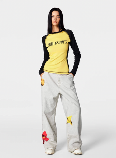 Achock Gray Floral Print Jeans | Face 3 Face