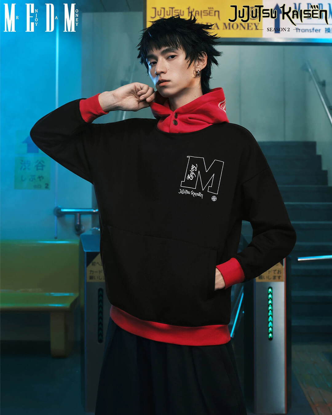 MEDM and Jujutsu Kaisen unite in this striking collaboration hoodie, drawing inspiration from Yuji Itadori's iconic color palette. The colorblock design captures the essence of the protagonist's aesthetic, blending streetwear sensibility with anime fandom appeal. Crafted for those who appreciate bold graphic storytelling and contemporary silhouettes, this piece seamlessly transitions from casual wear to statement-making streetwear. Perfect for collectors and fans seeking wearable art that honors the series while maintaining authentic urban style.