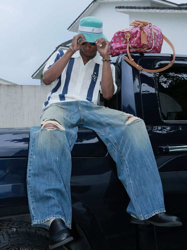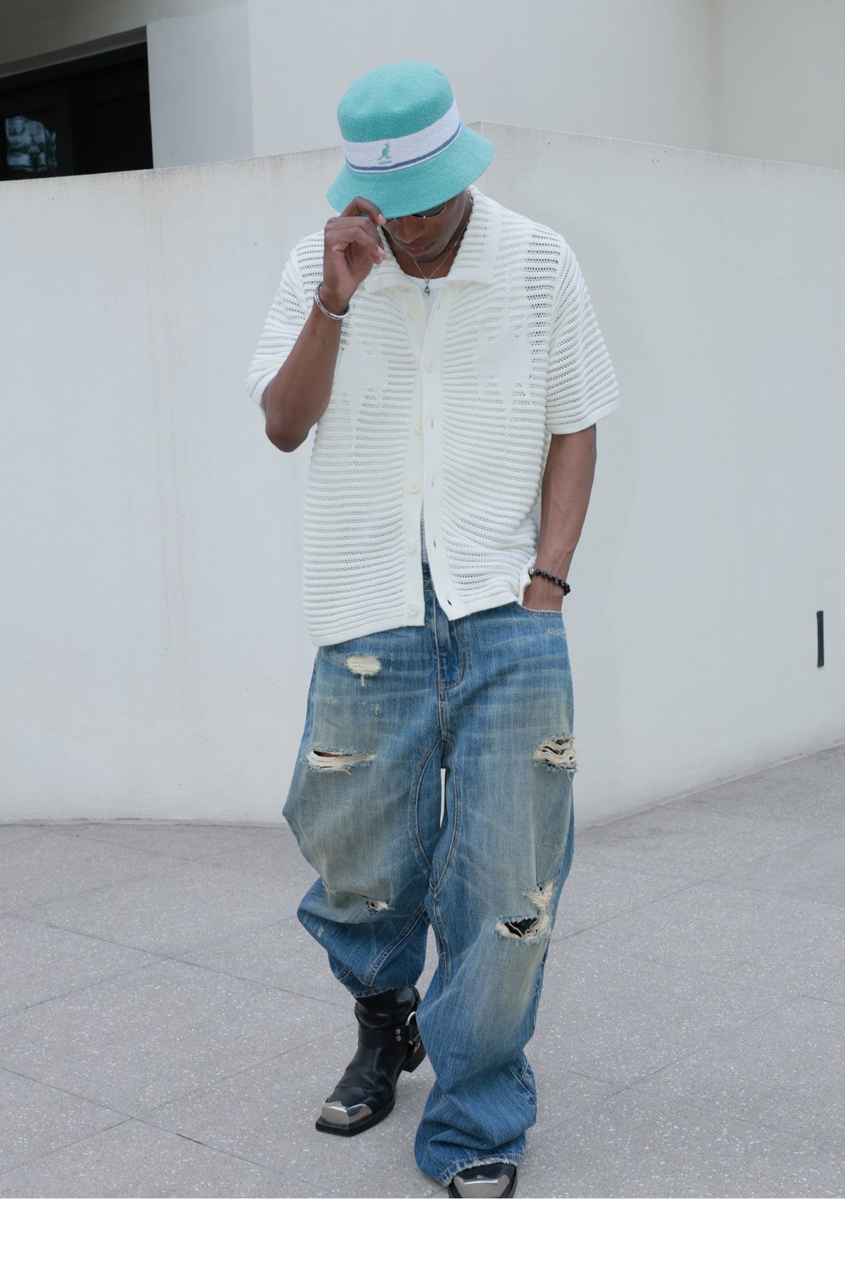 STEEPC Distressed Cat Whisker Washed Baggy Jeans | Face 3 Face