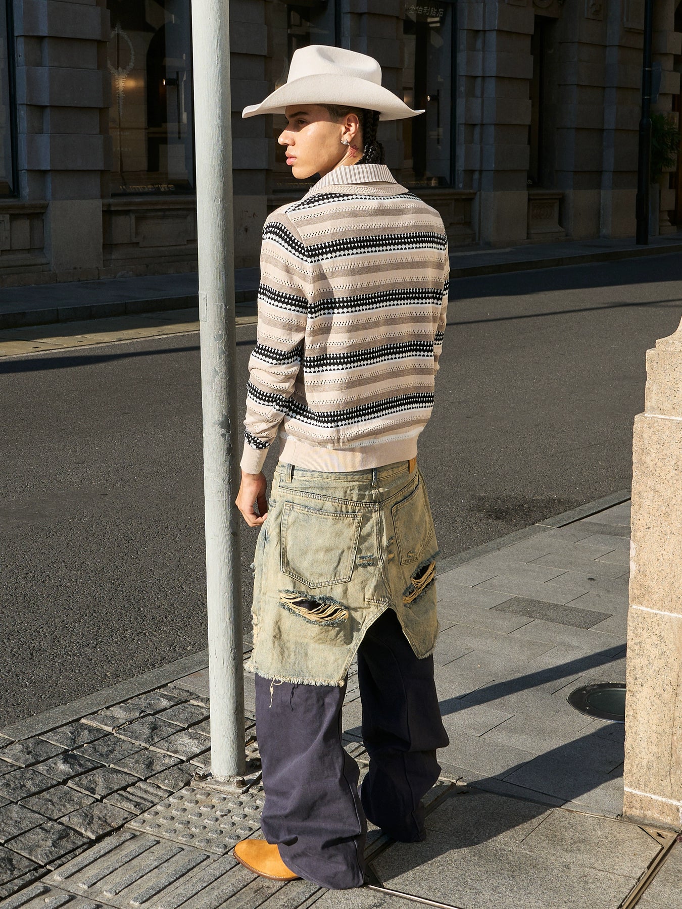 STEEPC Layered Design Washed Distressed Baggy Jeans | Face 3 Face