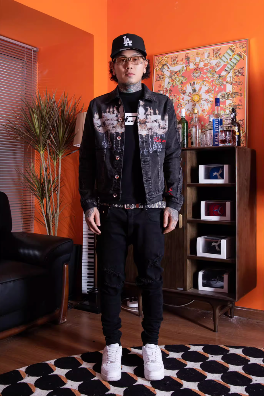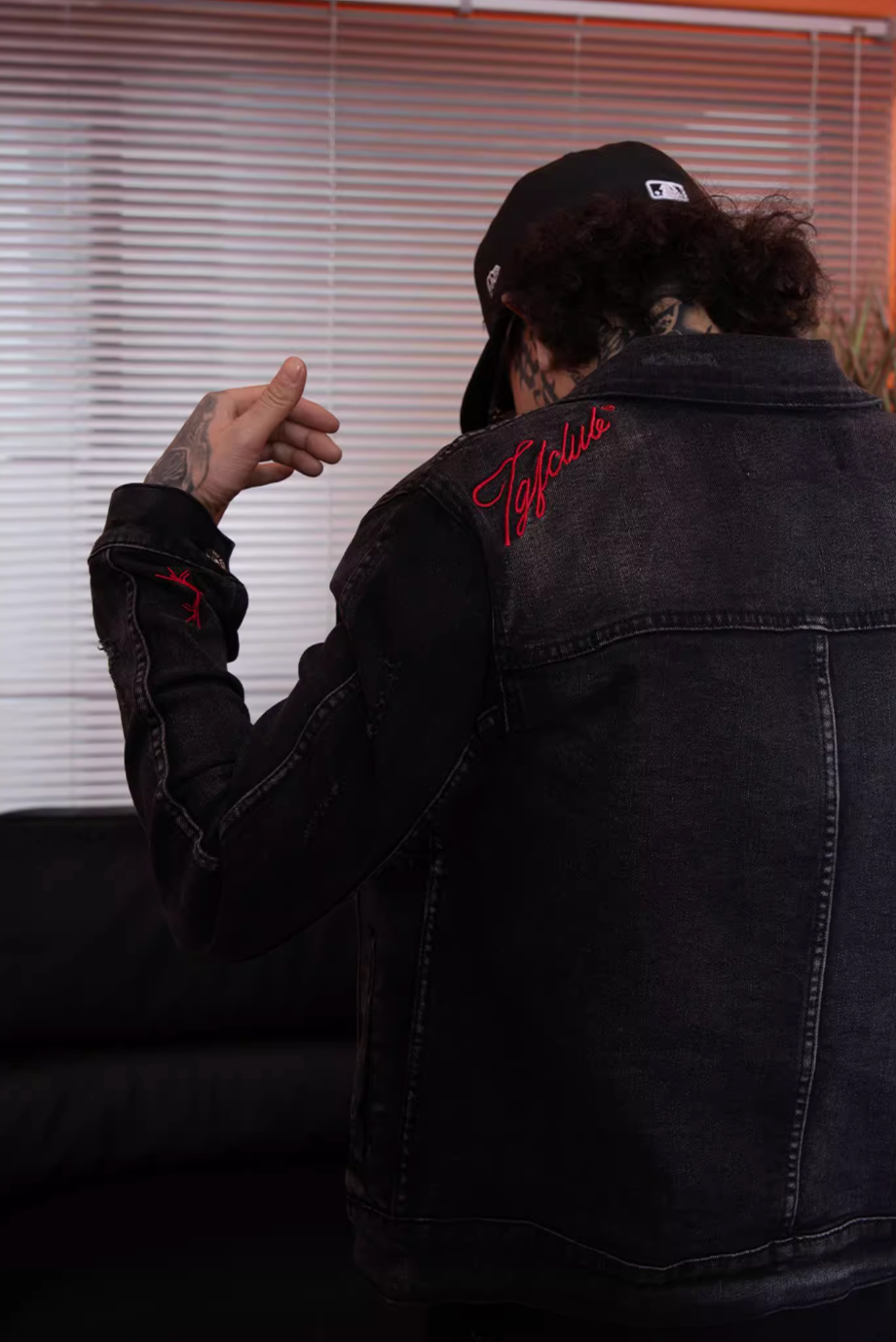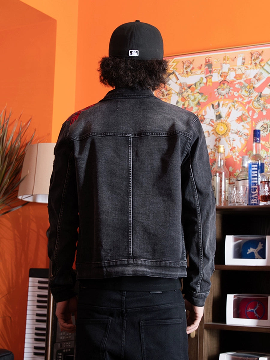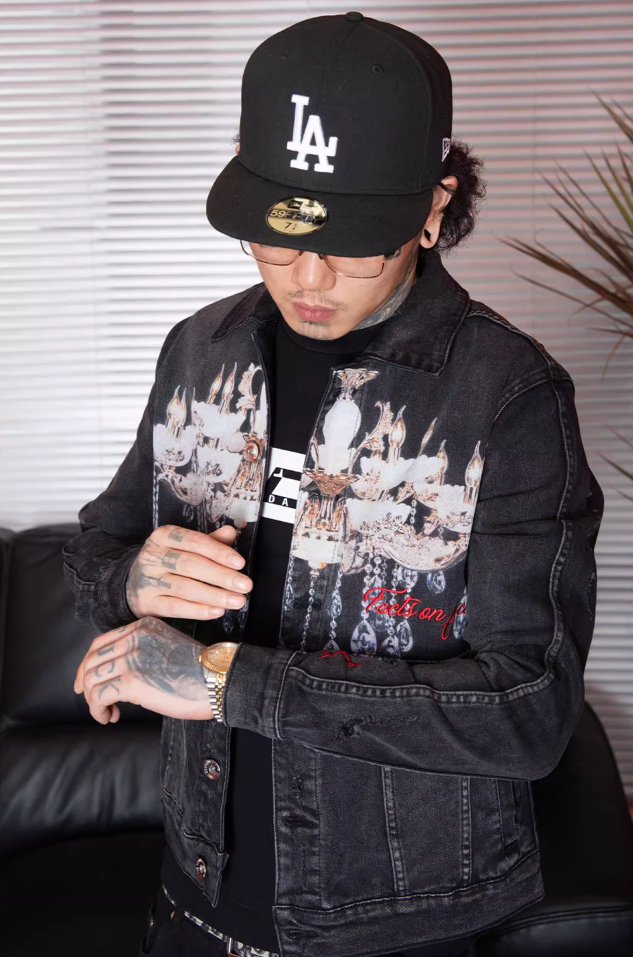 TGFCLUB Chandelier Digital Print Washed Slim Denim Jacket | Face 3 Face