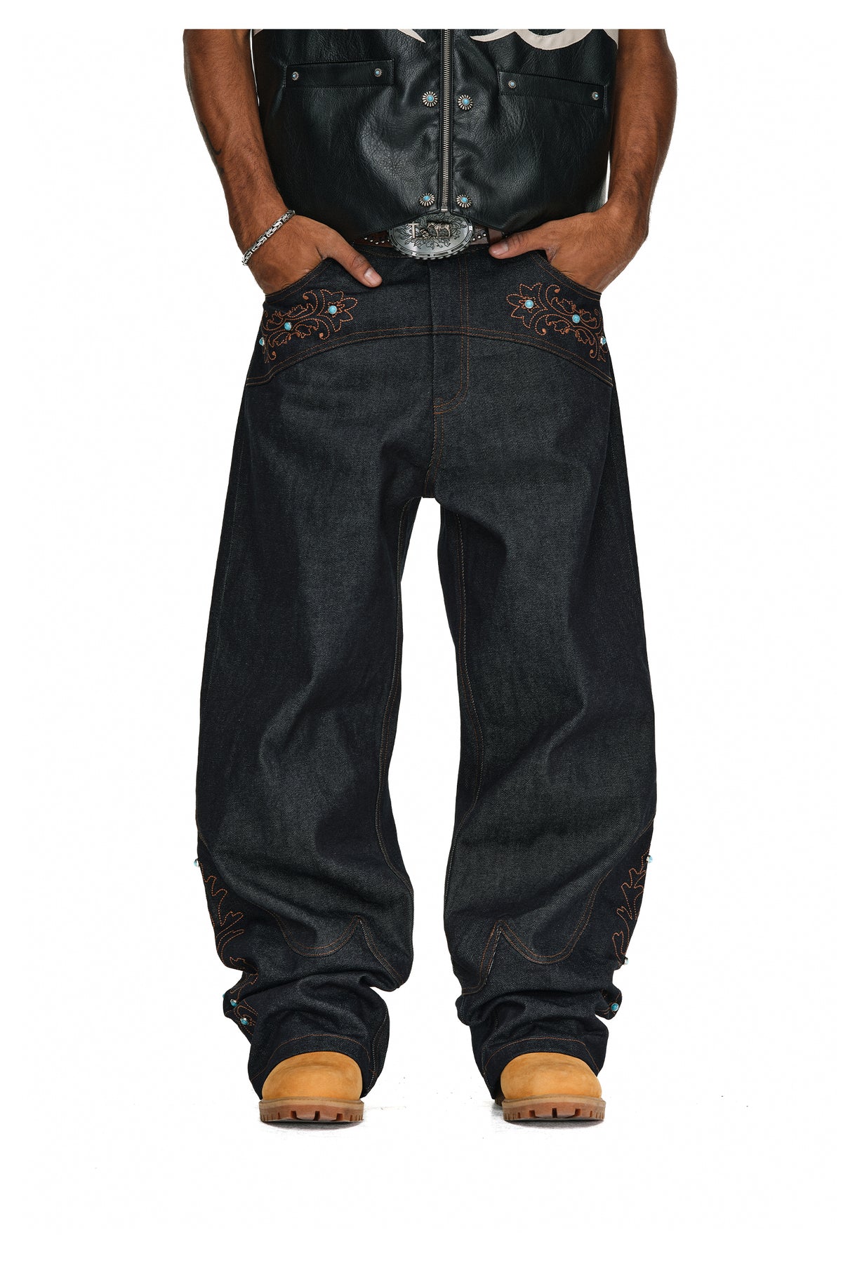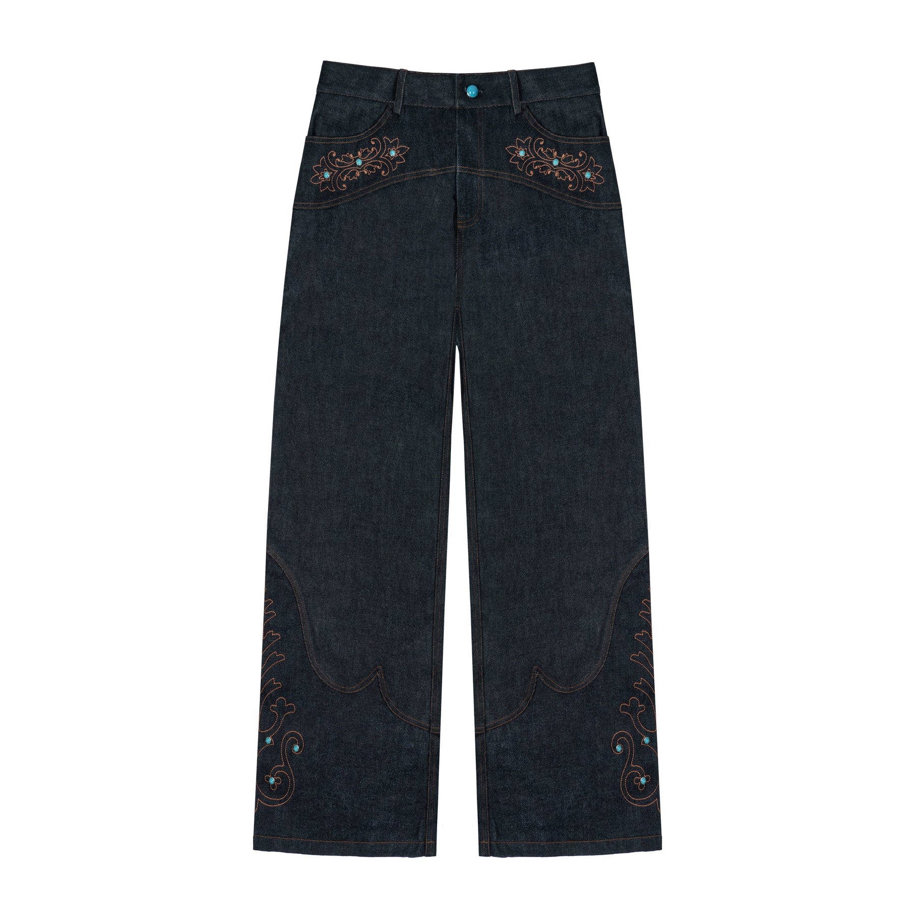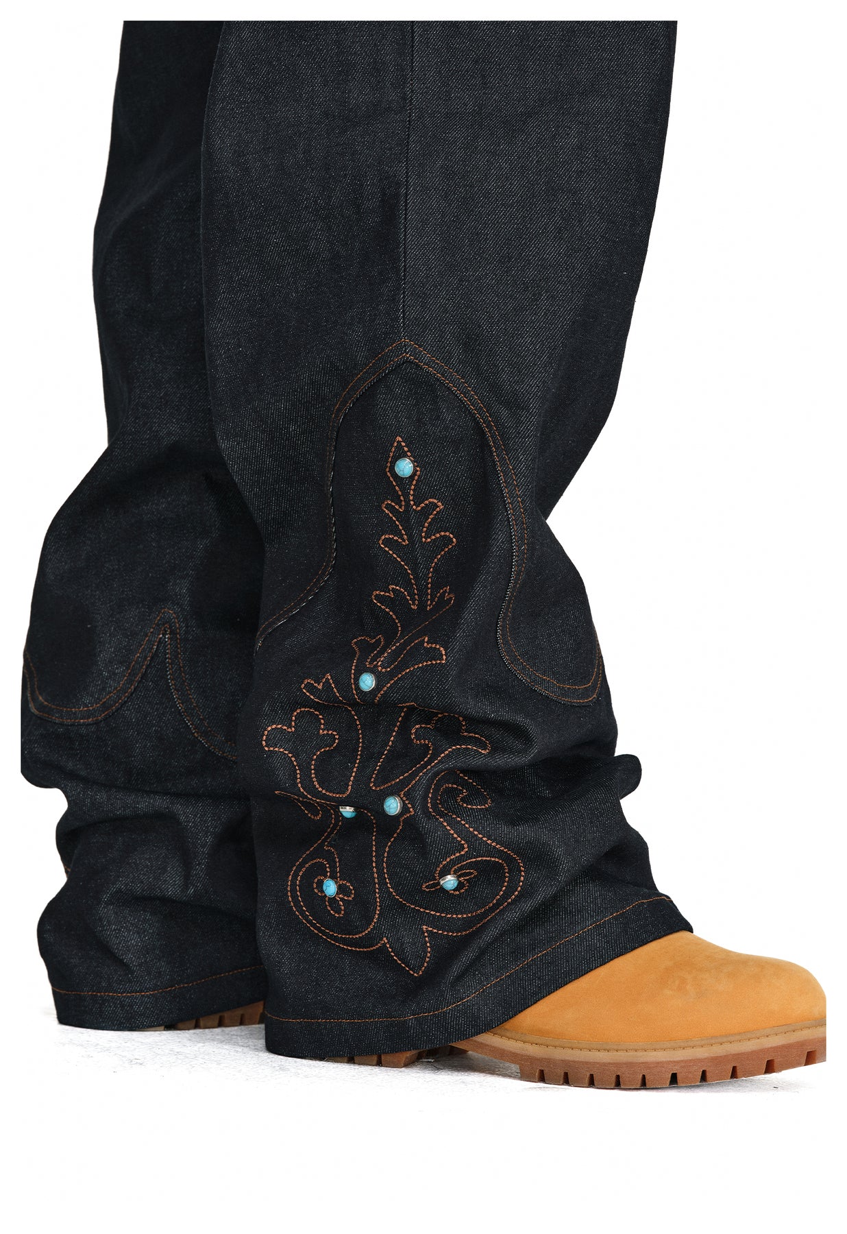ANTIDOTE Turquoise Studded Embroidered Western Jeans