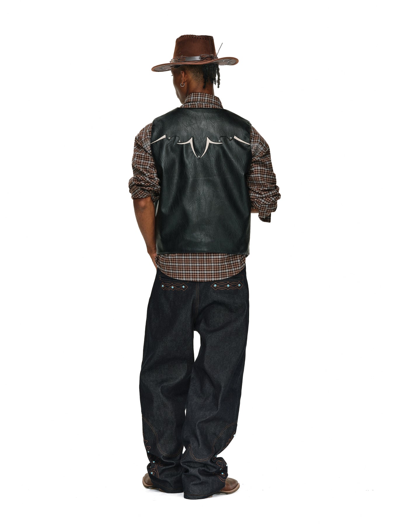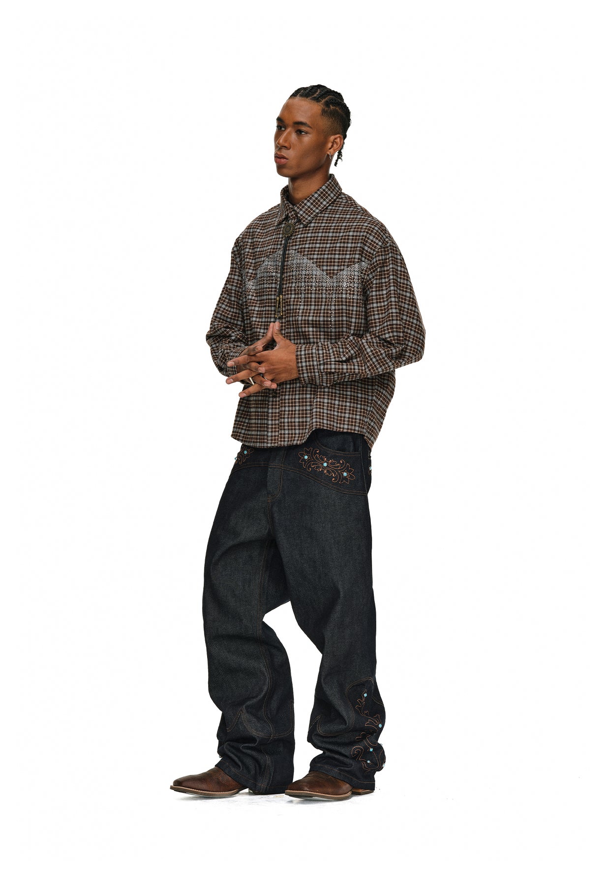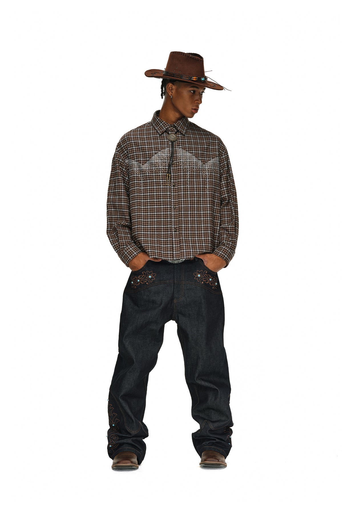ANTIDOTE Turquoise Studded Embroidered Western Jeans