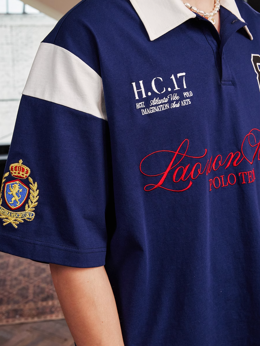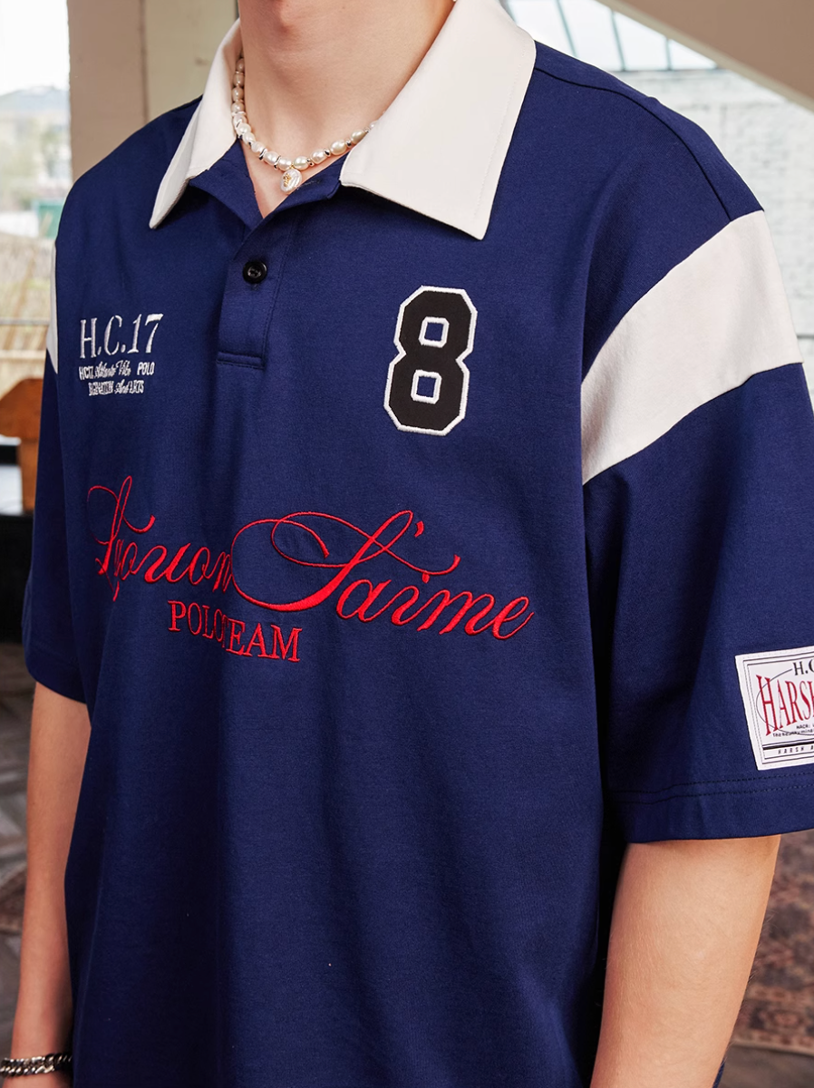 Harsh and Cruel Colorblock Number Embroidered Polo