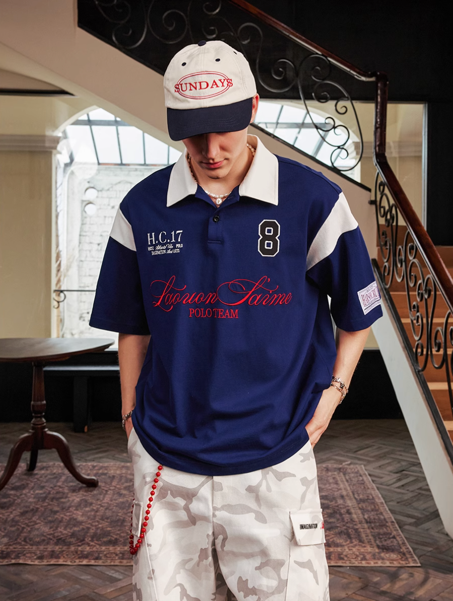 Harsh and Cruel Colorblock Number Embroidered Polo | Face 3 Face