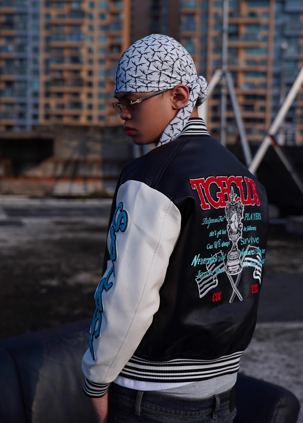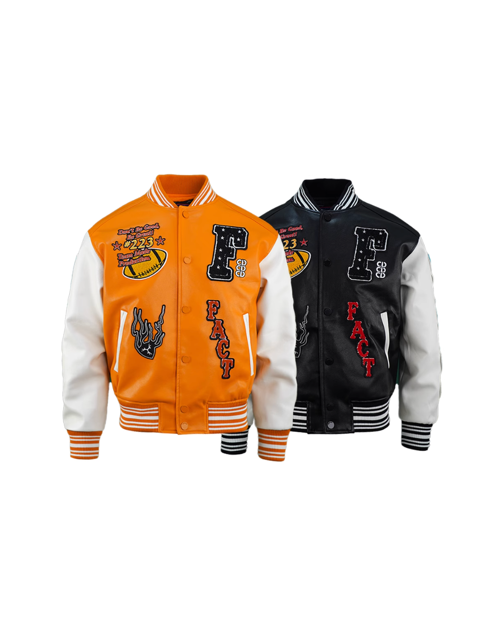 TGFCLUB Trophy Embroidered Colorblock PU Leather Varsity Jacket | Face 3 Face