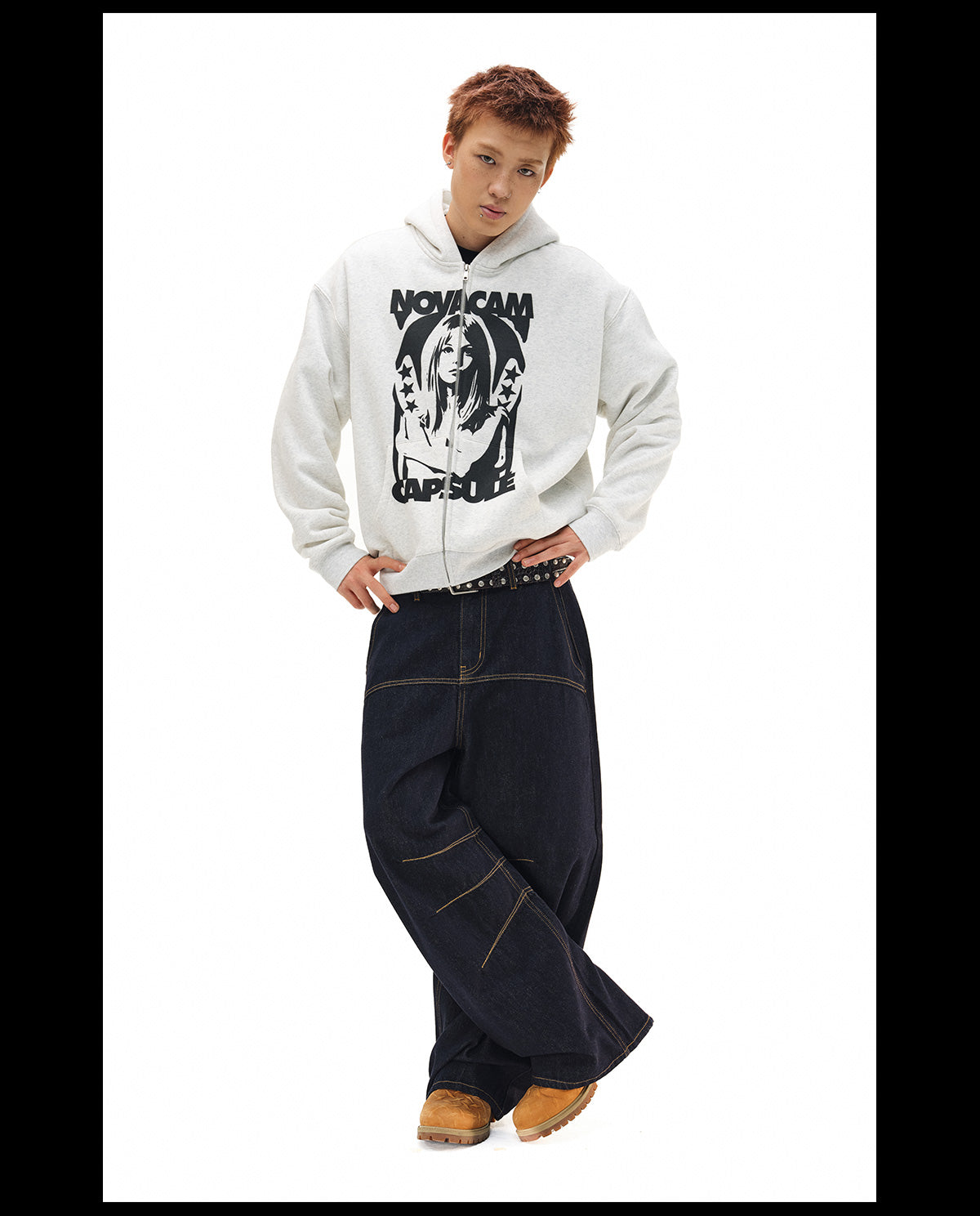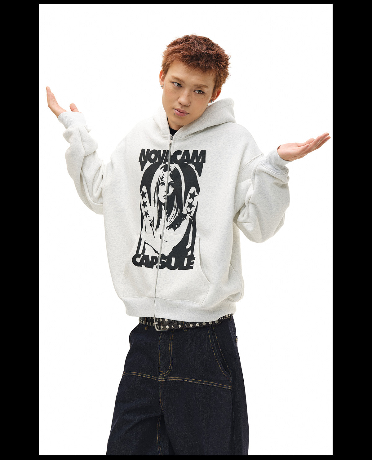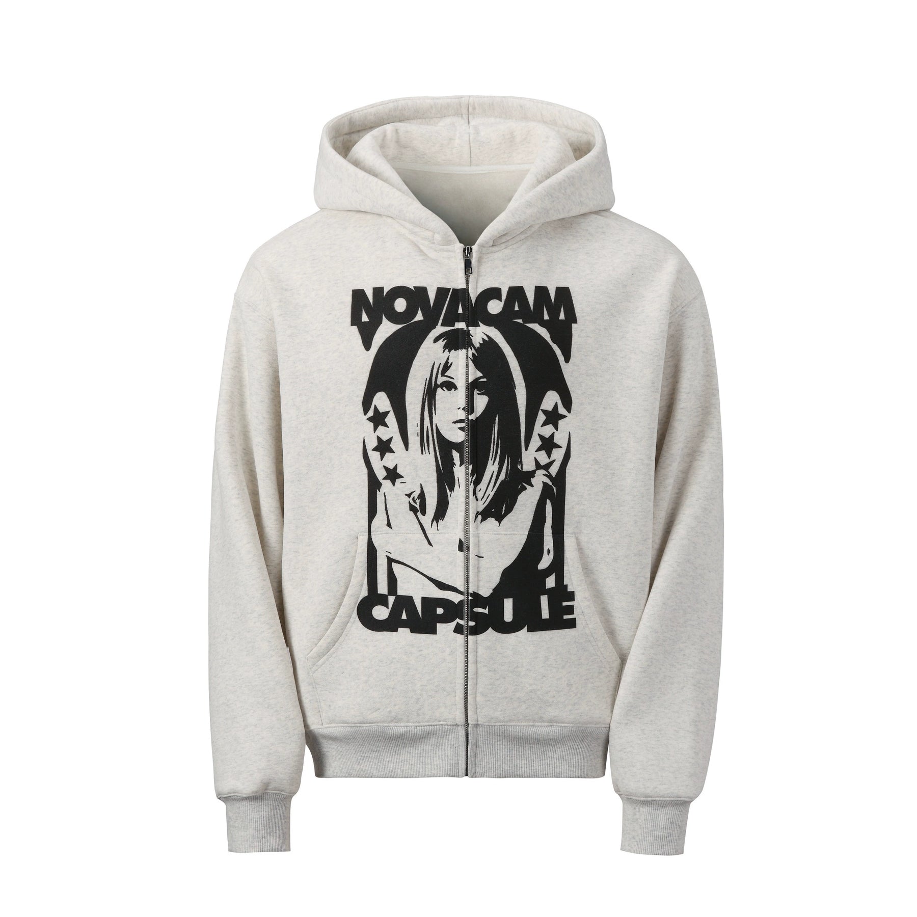 NOVACAM Vintage Print Zip Up Hoodie | Face 3 Face