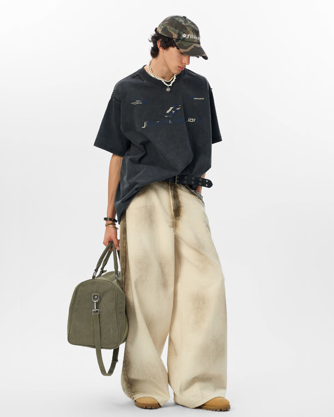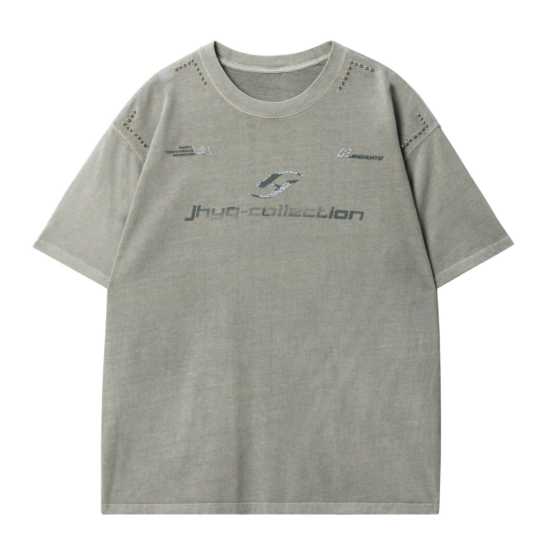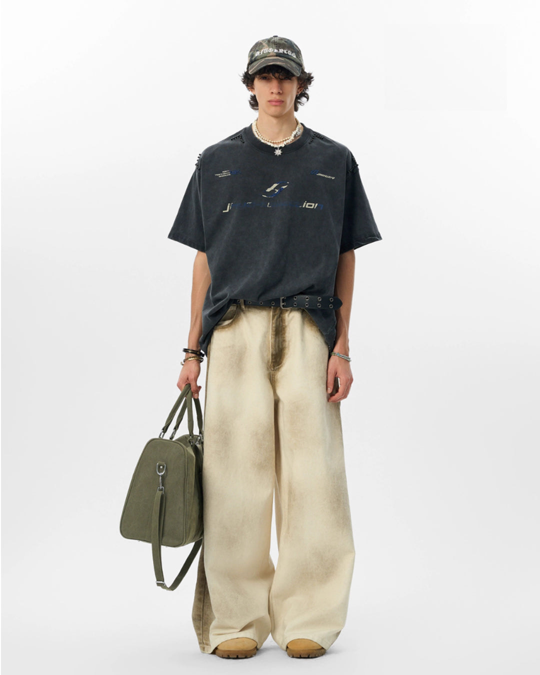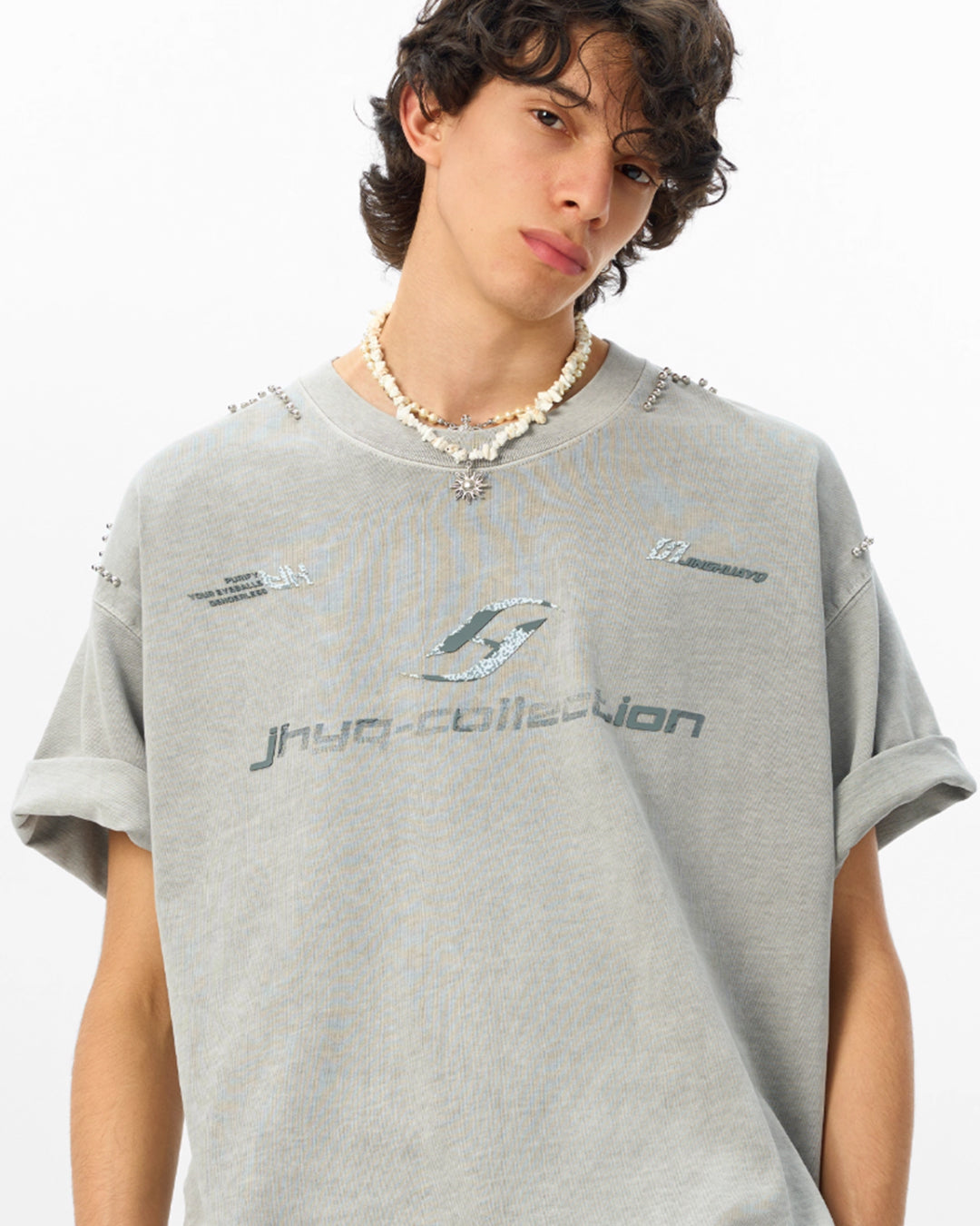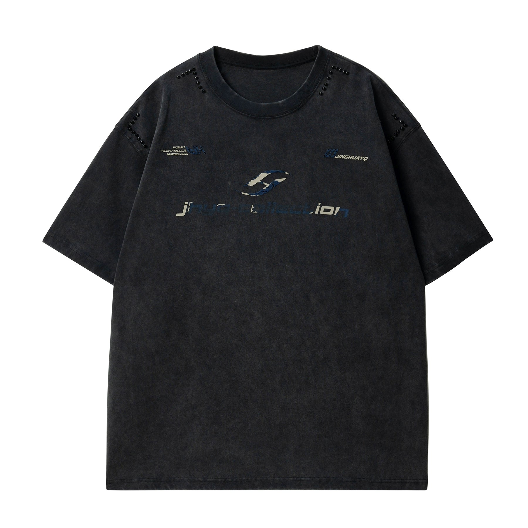 JHYQ Destruction Washed Mottled Print Beads Tee