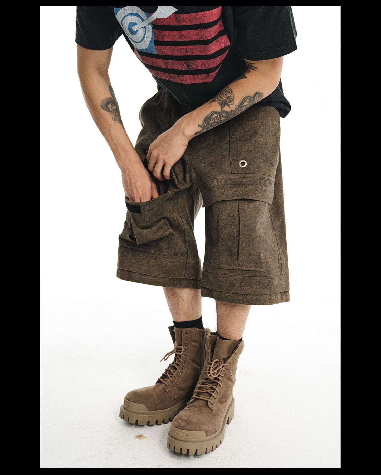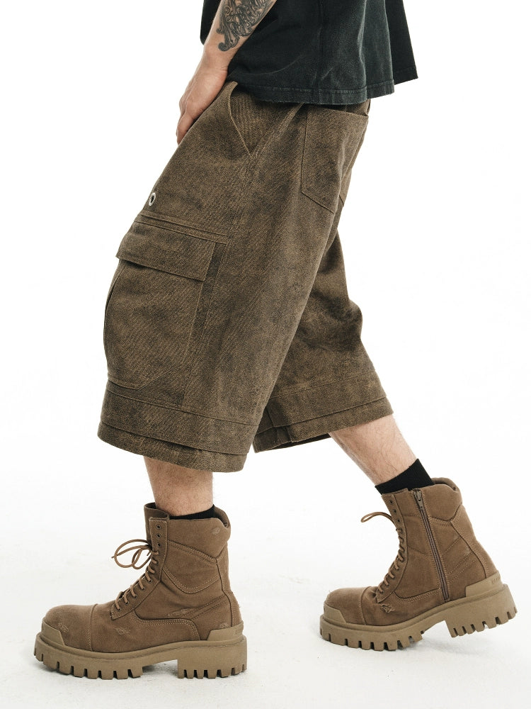 NOVACAM Baggy Washed Brown Utility Shorts | Face 3 Face