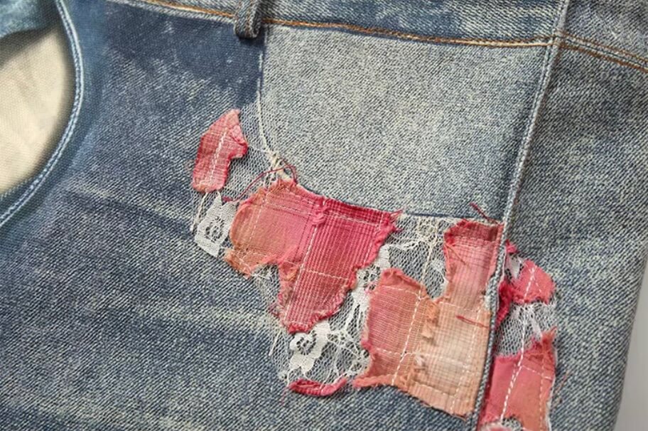 YADcrew Evening Lace Patchwork 3D Print Denim Tote Bag | Face 3 Face