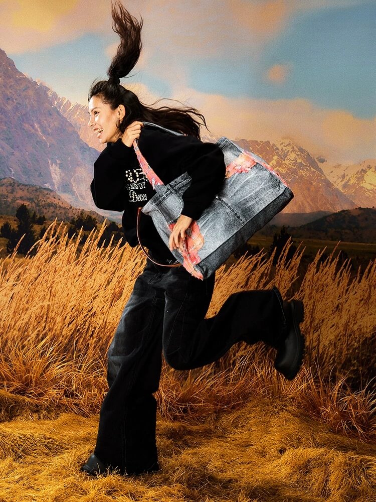 YADcrew Evening Lace Patchwork 3D Print Denim Tote Bag combines streetwear edge with refined craftsmanship. This statement piece features intricate lace patchwork detailing and dimensional 3D print elements layered across premium denim, creating visual depth that elevates everyday styling. The spacious tote silhouette accommodates daily essentials while the structured construction maintains its shape. Perfect for those seeking bold, conversation-starting accessories that bridge casual and elevated aesthetics. A versatile investment for wardrobes that prioritize distinctive design and quality construction.
