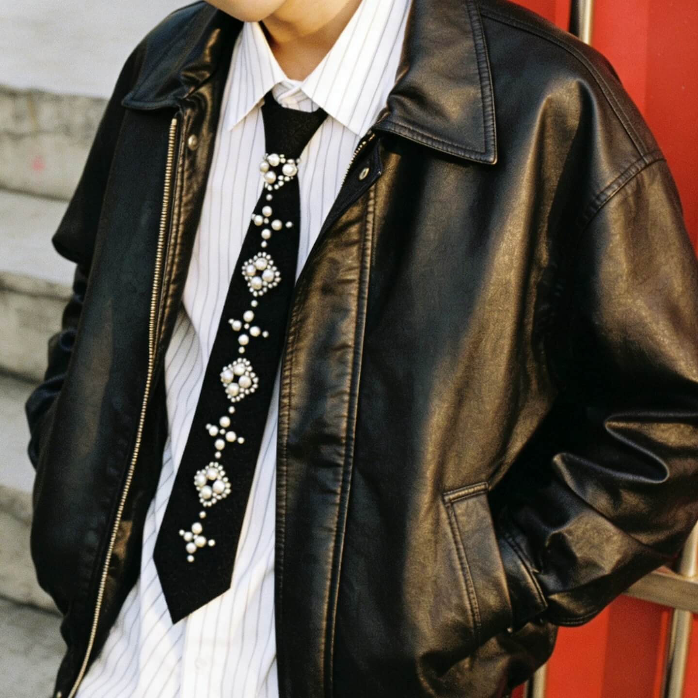 YADcrew Pearl Embellished Black Tie combines contemporary streetwear aesthetics with practical convenience. Measuring approximately 40 cm in length with a 6 cm width, this slip-on design eliminates the need for traditional tying. The elastic neck loop ensures effortless wear, making it ideal for quick styling without compromising on visual impact. Adorned with pearl embellishment details, it delivers a refined edge to casual and elevated looks alike. Lightweight construction guarantees all-day comfort, whether layered into streetwear ensembles or paired with everyday outfits. One size fits most.