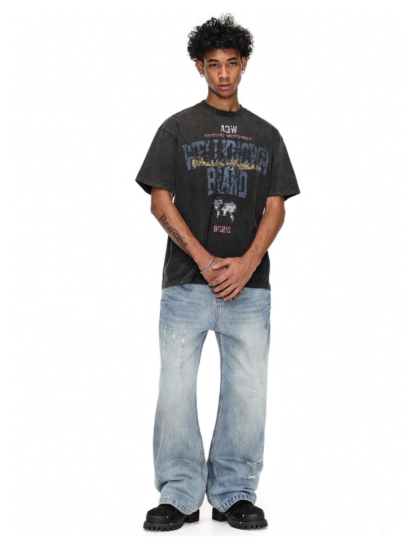ANTIDOTE Destruction Scratches Washed Ice Blue Jeans