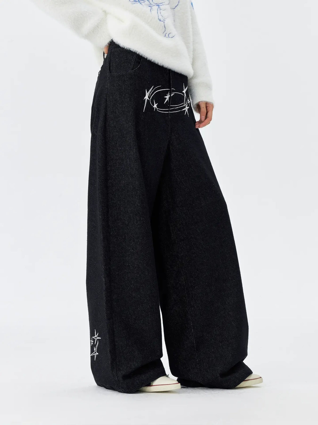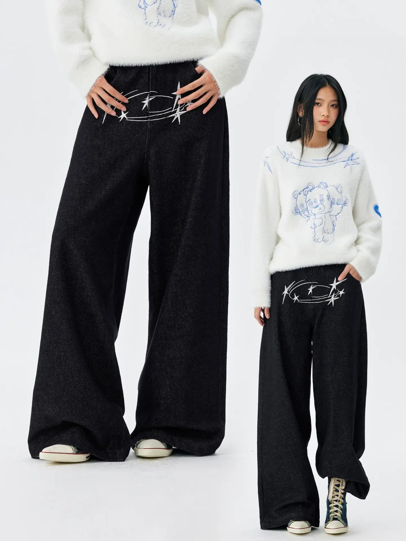 MEDM Stunner Bear Star Embroidered Baggy Jeans