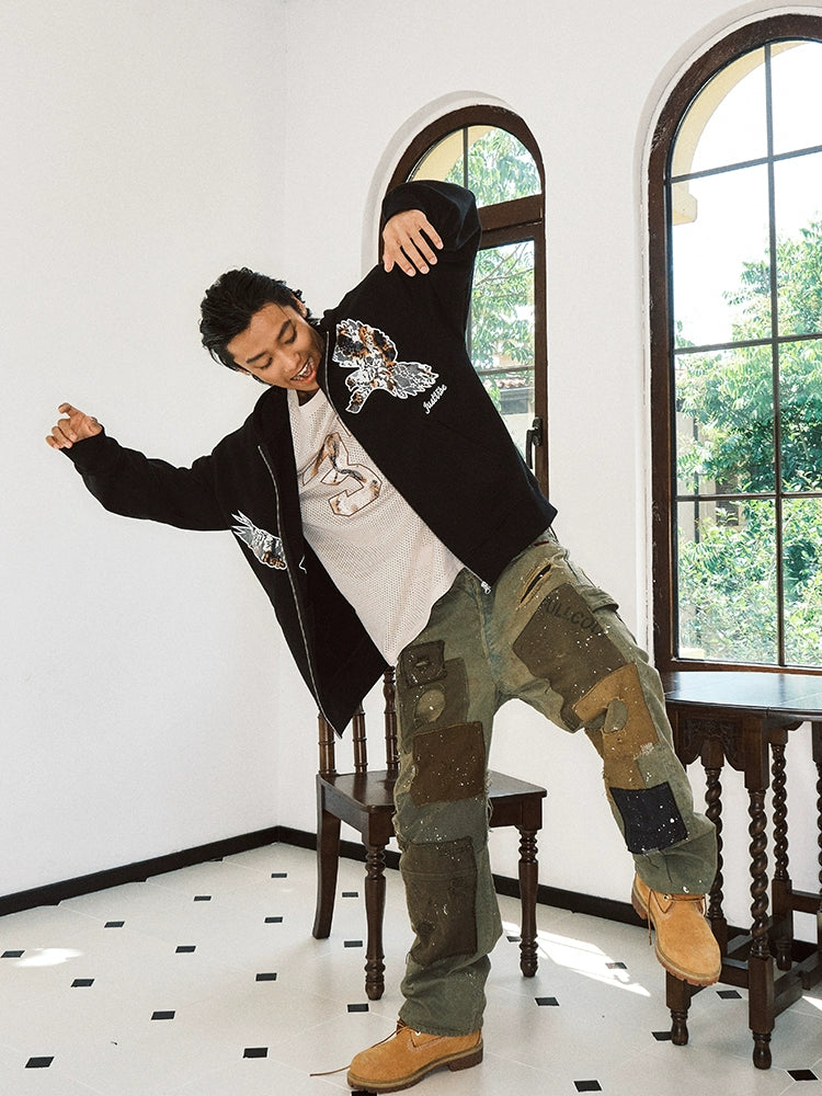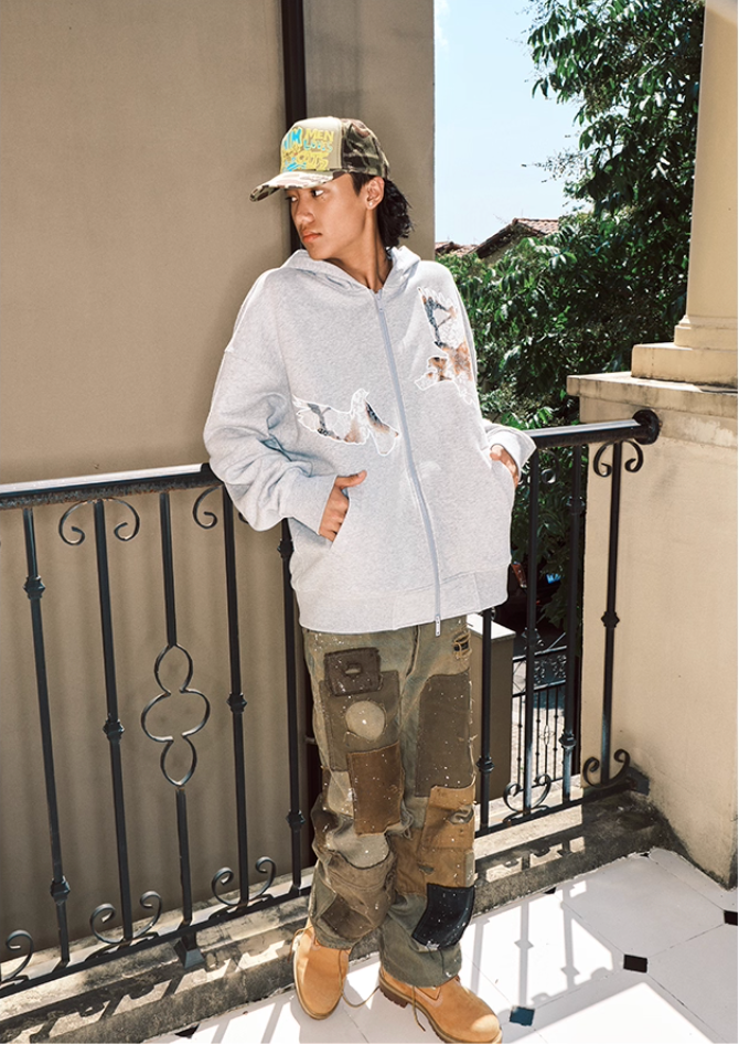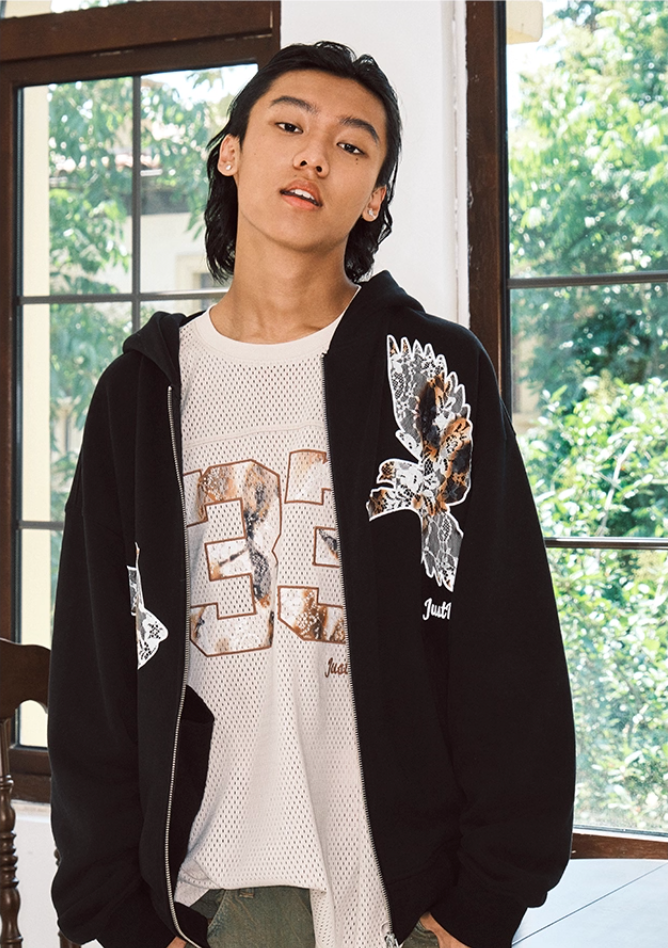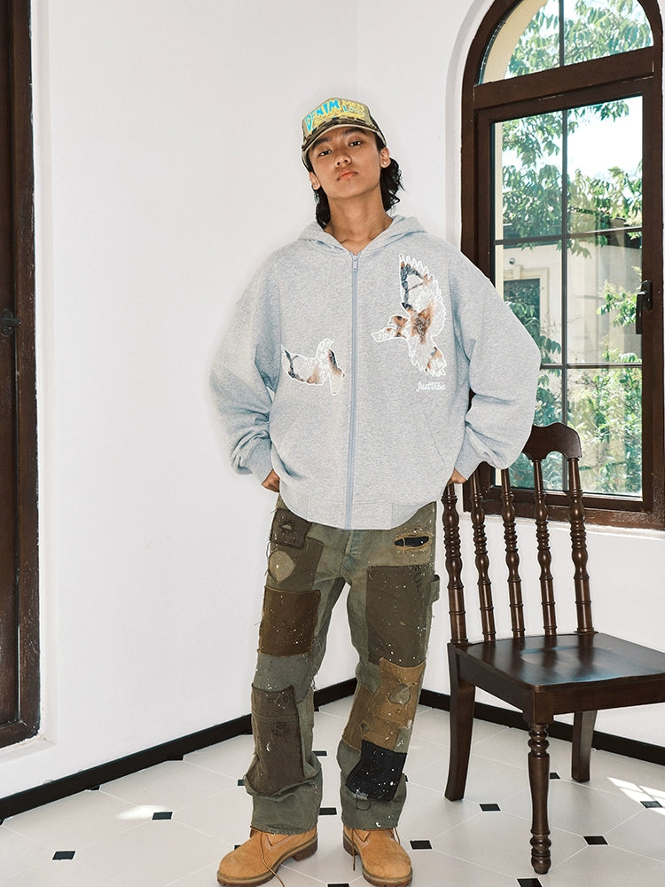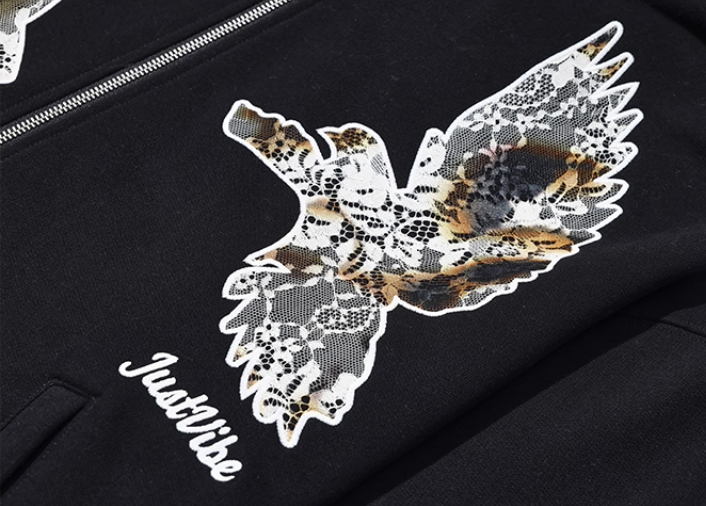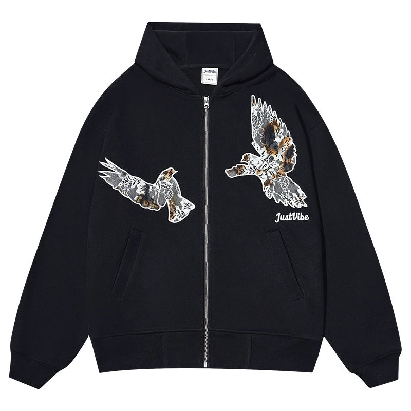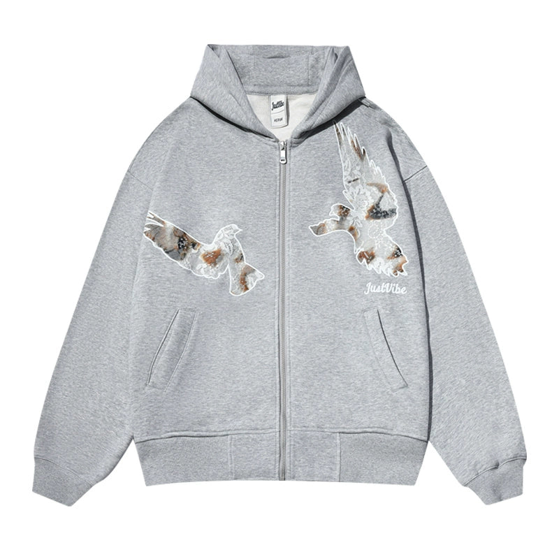 JUST VIBE Lace Peace Dove Zip Up Hoodie