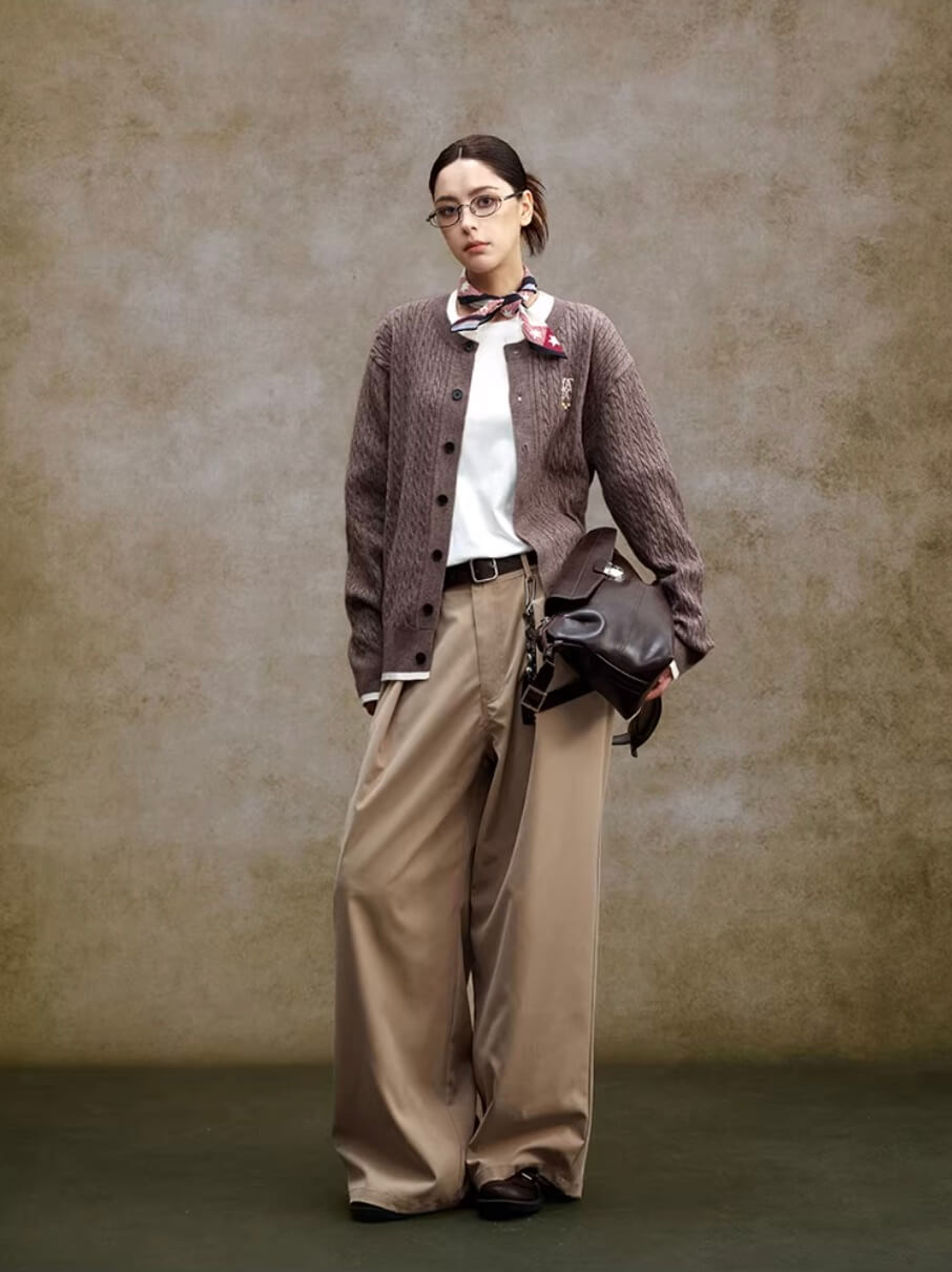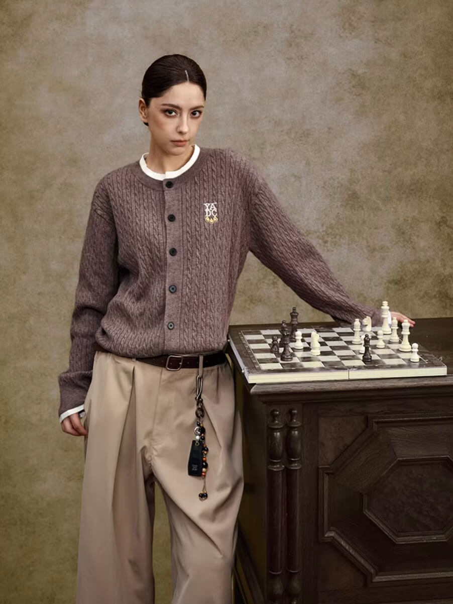 YADcrew Cable Knit Crew Neck Cardigan