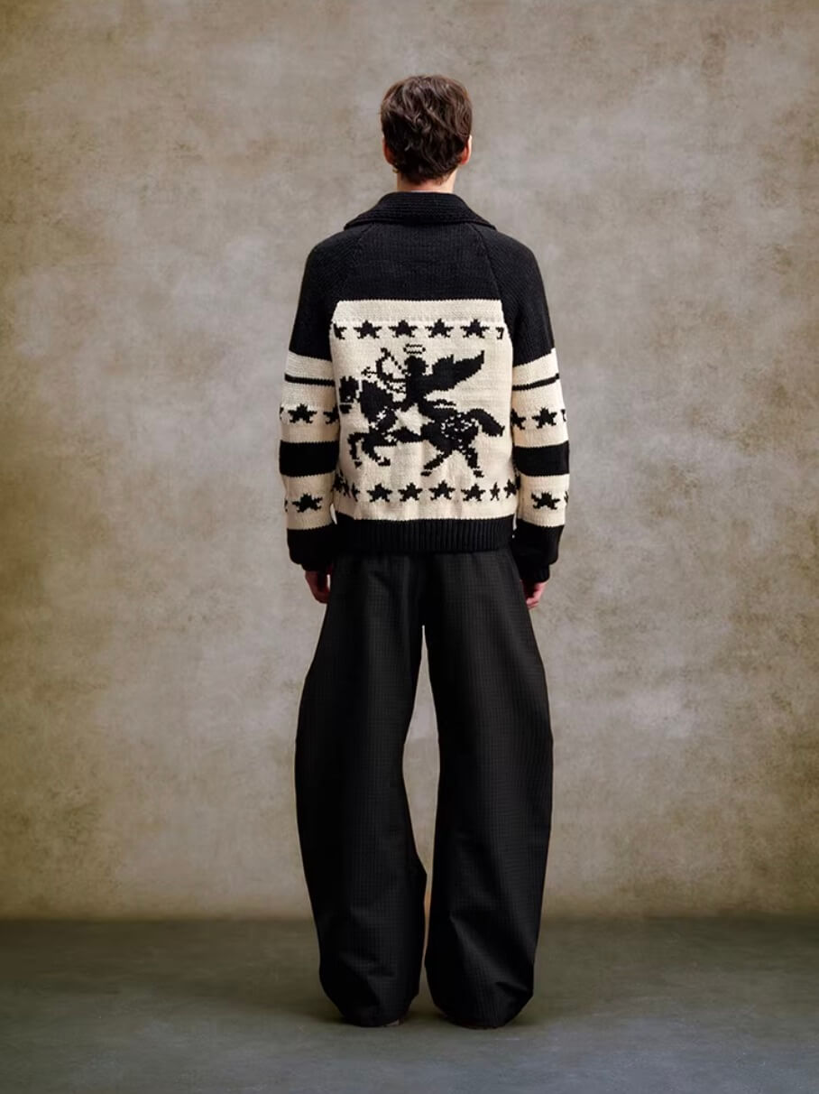 YADcrew Star Horse Angel Jacquard Knit Cowichan Cardigan