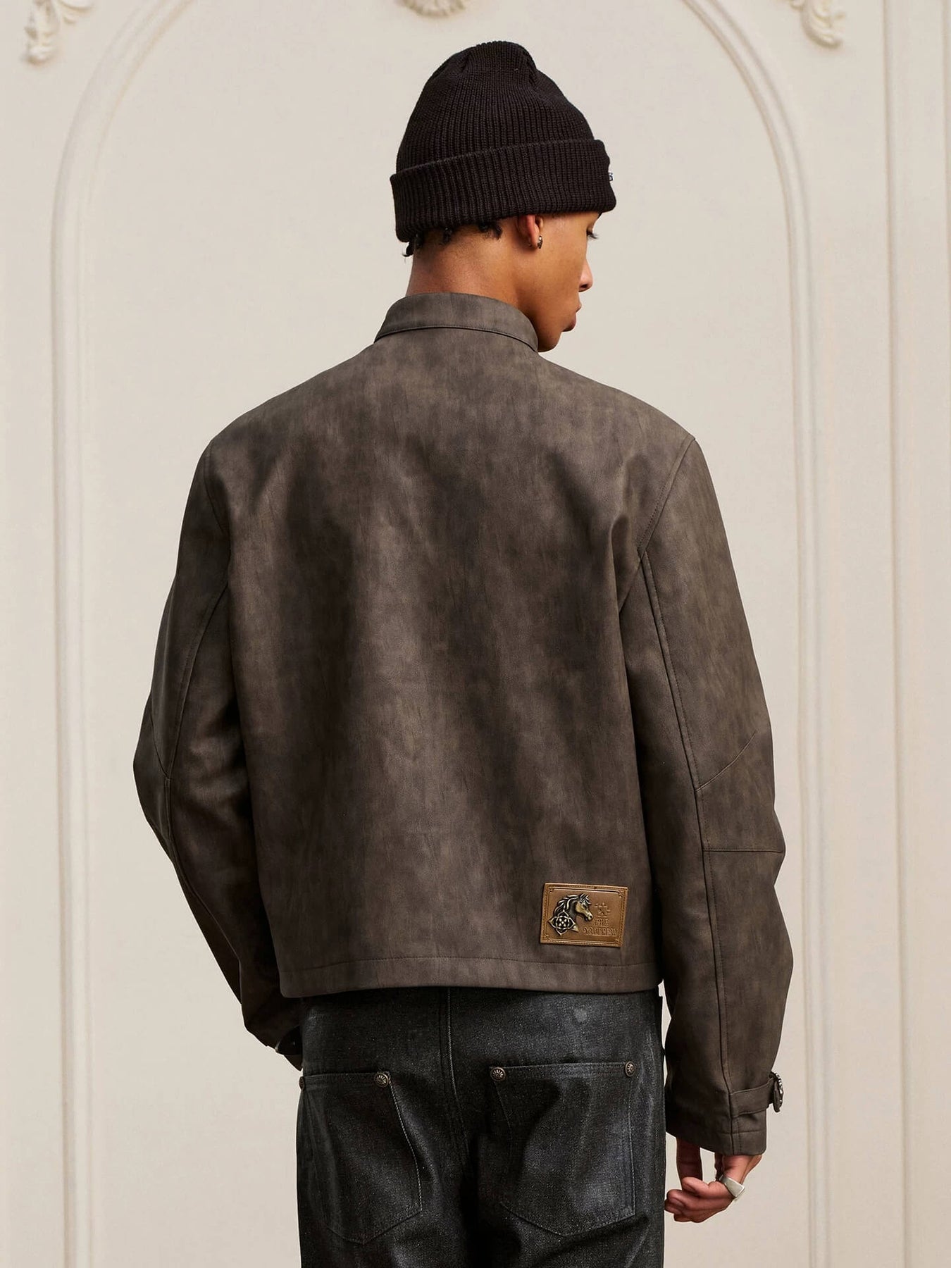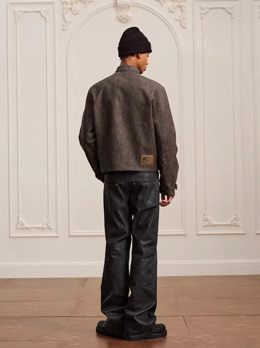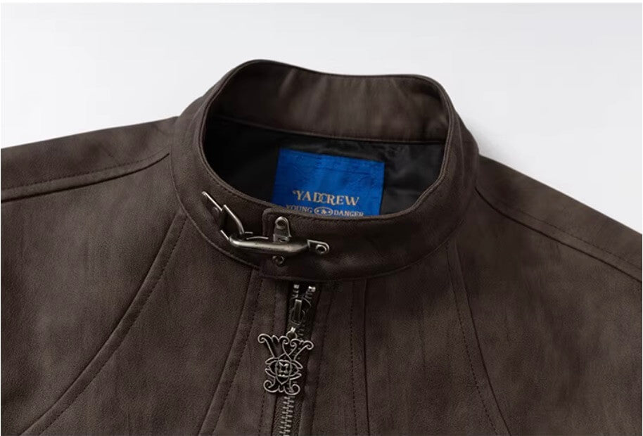 YADcrew Washed PU Leather Racing Jacket | Face 3 Face