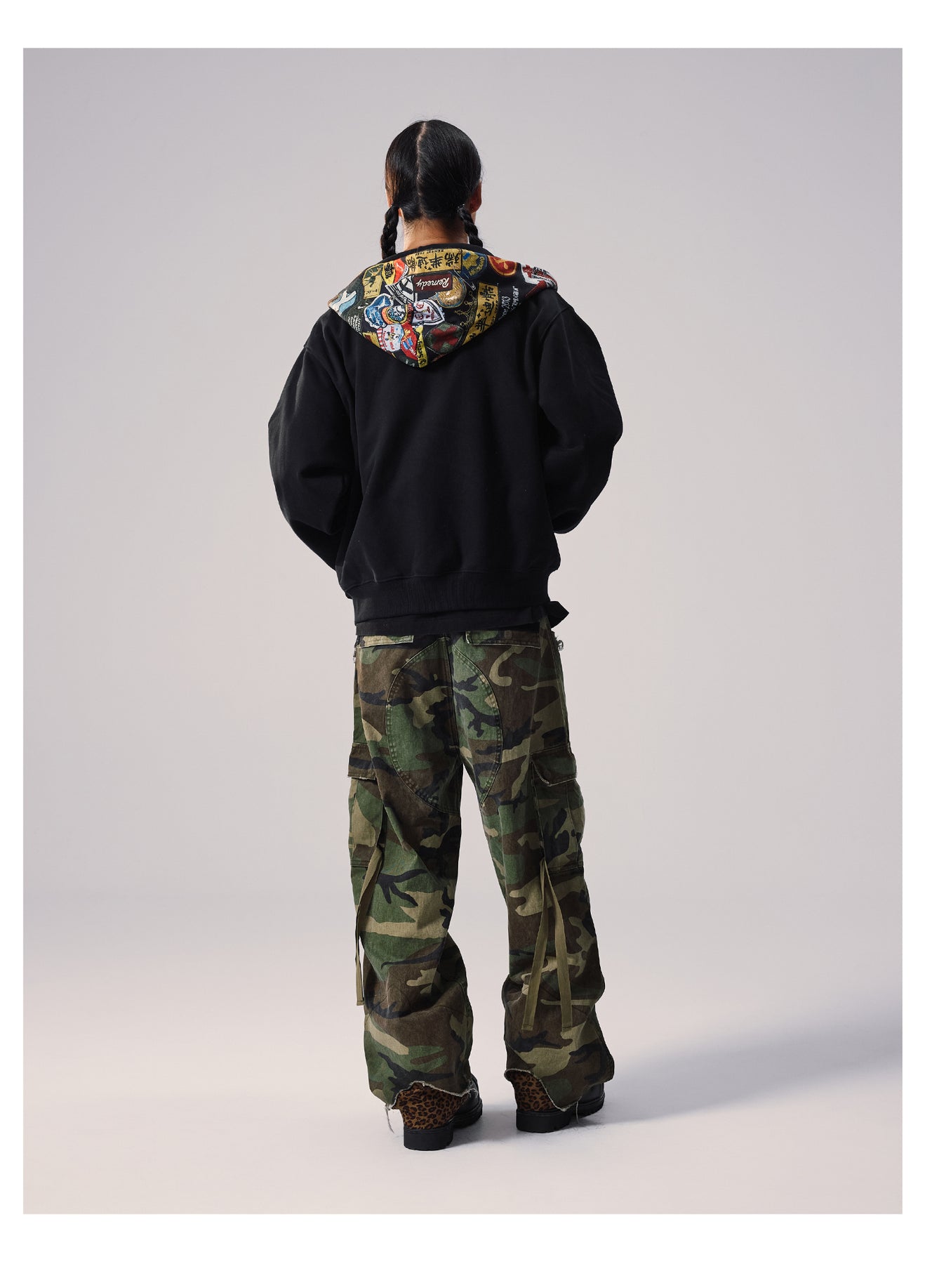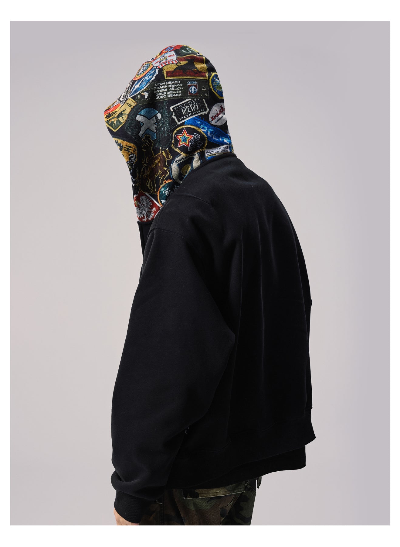 Remedy Badge Print Hood Zip Up Hoodie | Face 3 Face