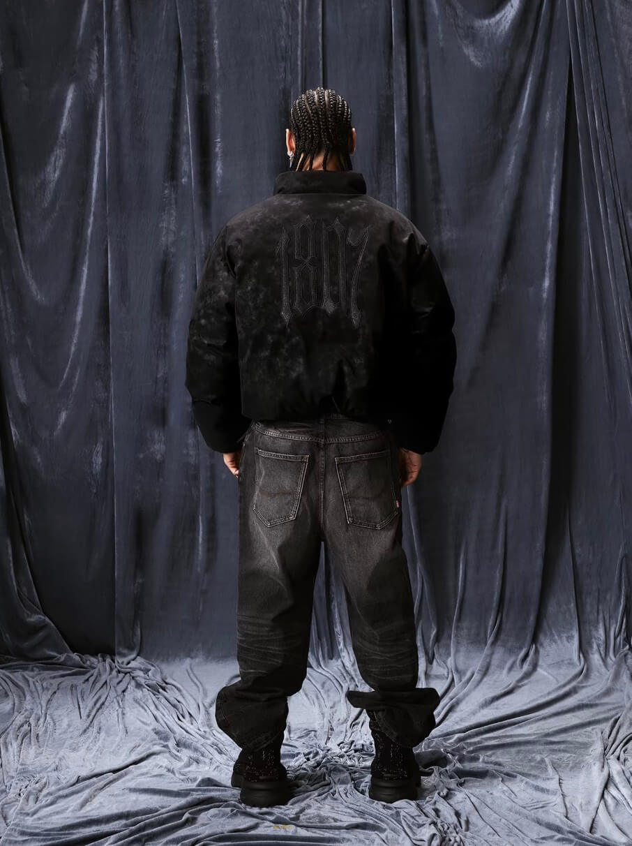 1807 Textured PU Leather Embroidered Down Jacket | Face 3 Face