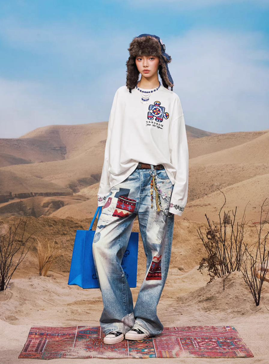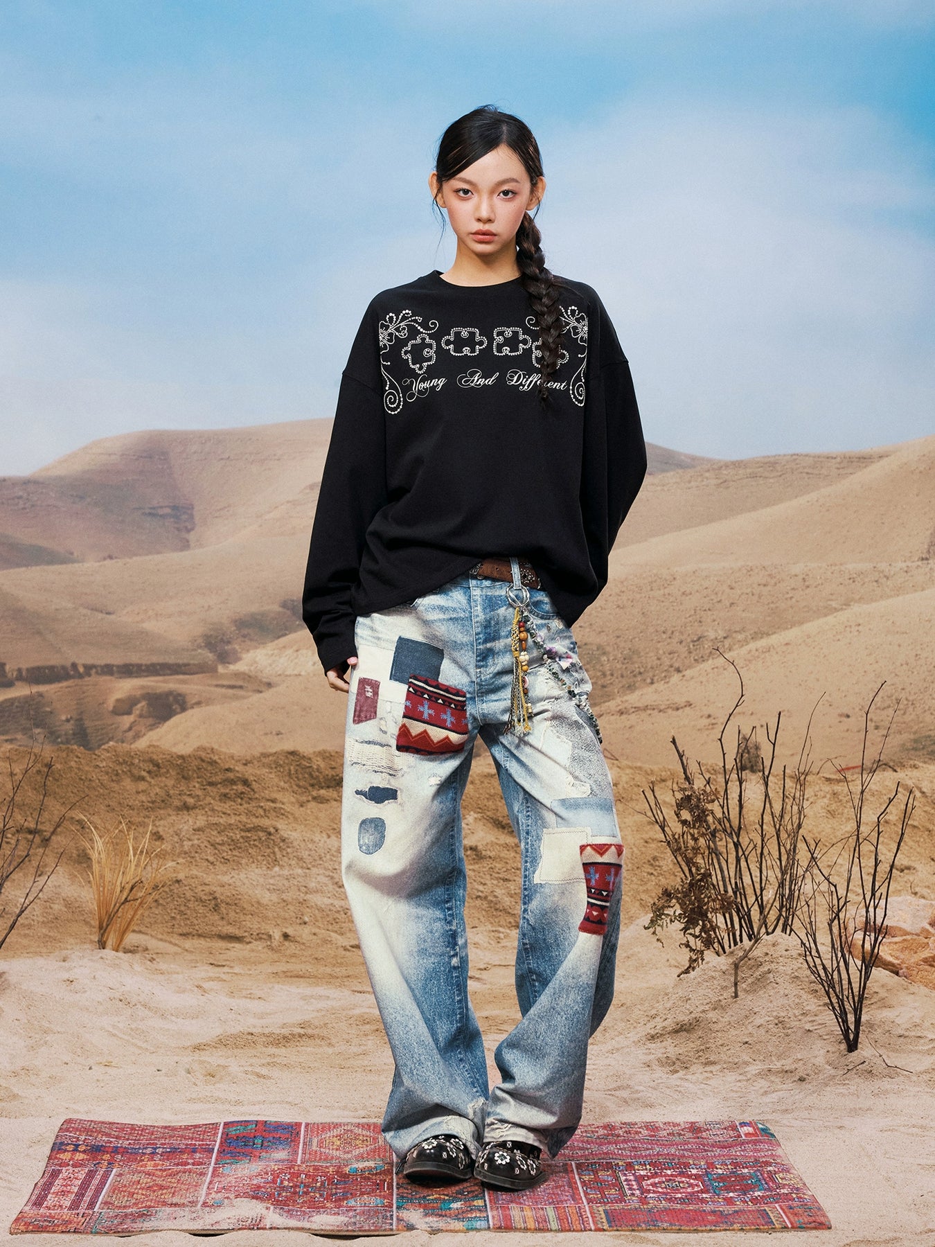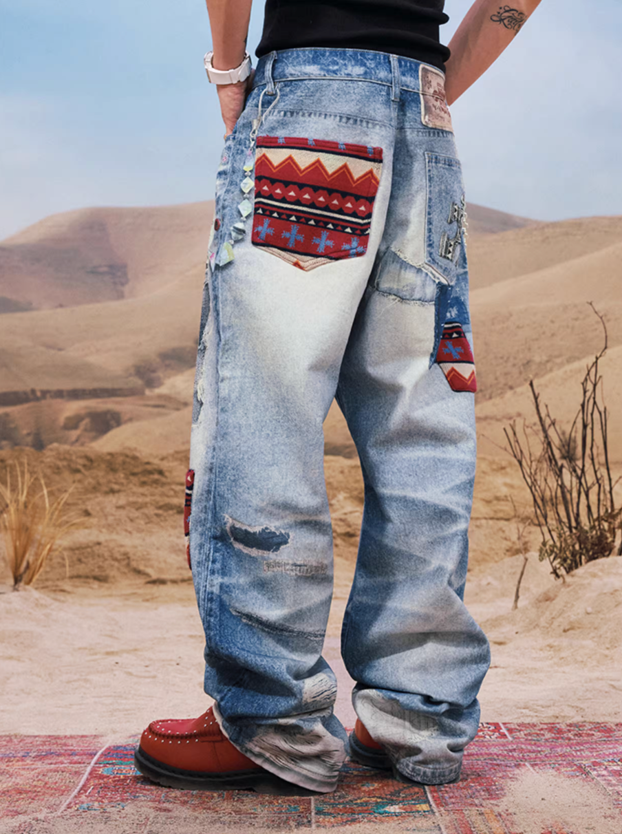 YADcrew Ethnic Patchwork Print Jeans | Face 3 Face