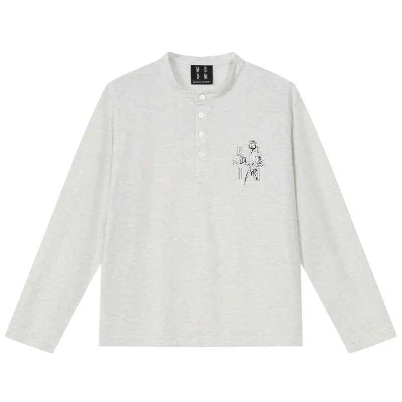 MEDM Rose Print Henley Long Sleeve Tee | Face 3 Face