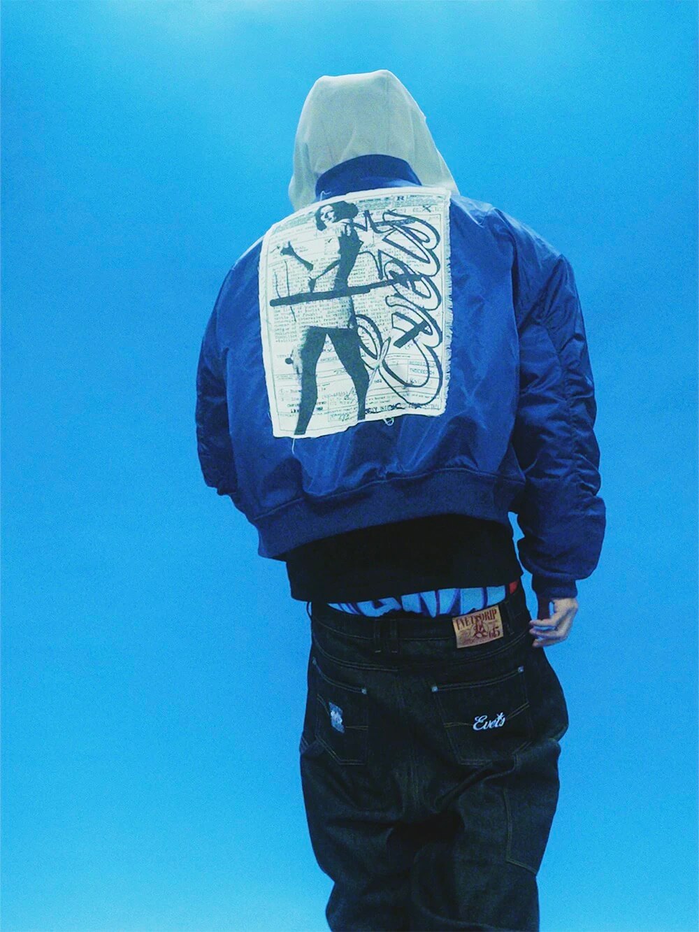 EVETS Blue MA-1 Hooded Bomber Jacket | Face 3 Face