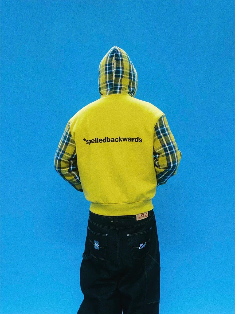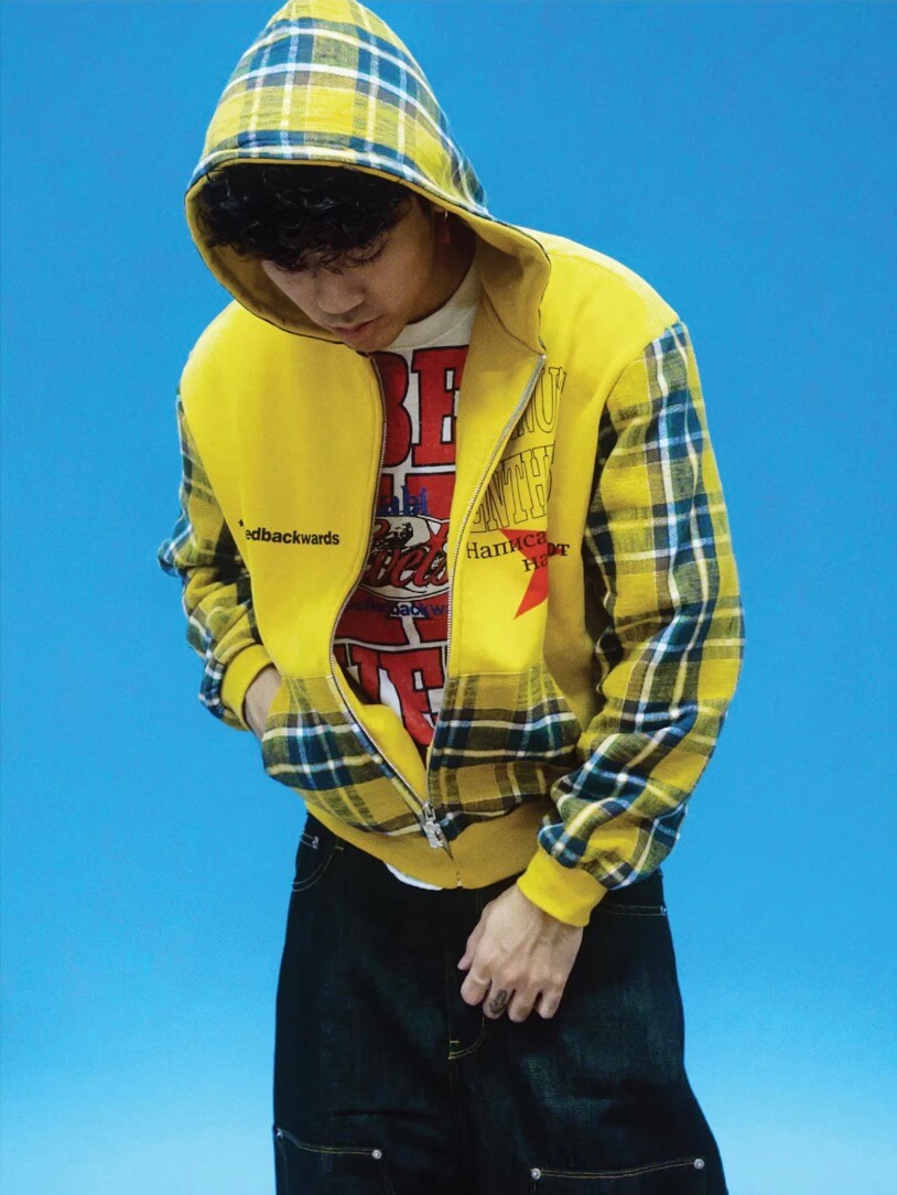 EVETS Contrast Plaid Patchwork Zip Up Hoodie