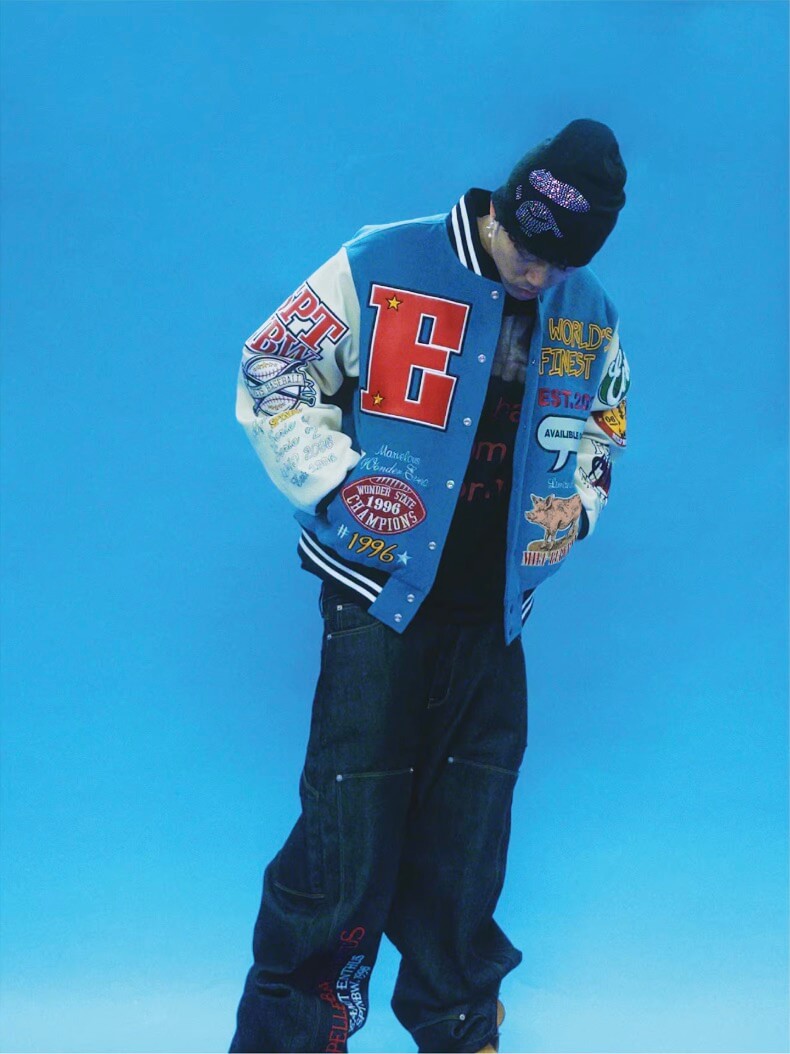 EVETS Embroidered Badge Varsity Jacket | Face 3 Face