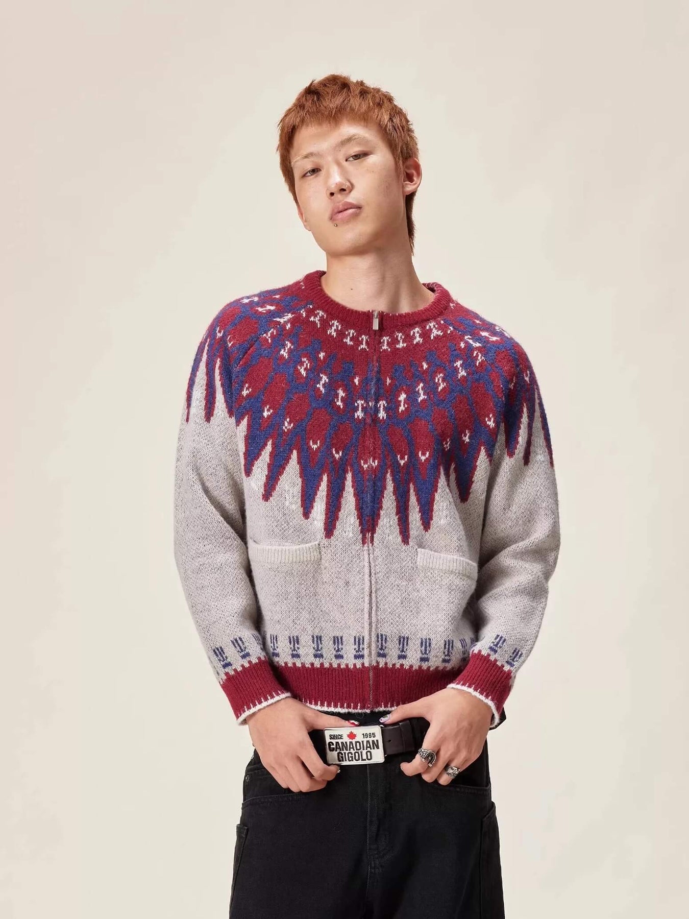 EVILKNIGHT(EK) Ethnic Pattern Knit Zip Up Cardigan
