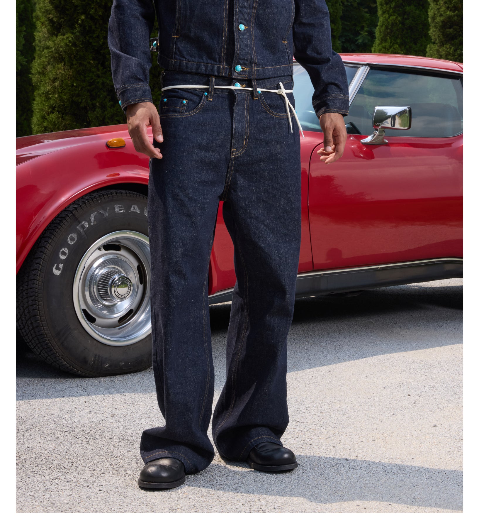 S45 Turquoise Studded Jeans | Face 3 Face