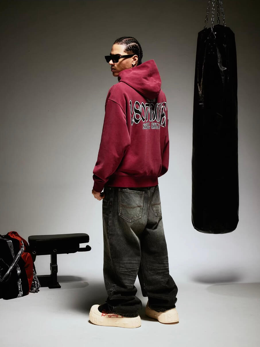1807 BOXE Vintage Printed Washed Hoodie